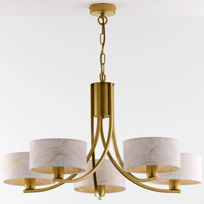 Jupiter 2097 - Kroonluchter met ketting ARTHUR 5xE27/15W/230V wit/goud/marmerdecor