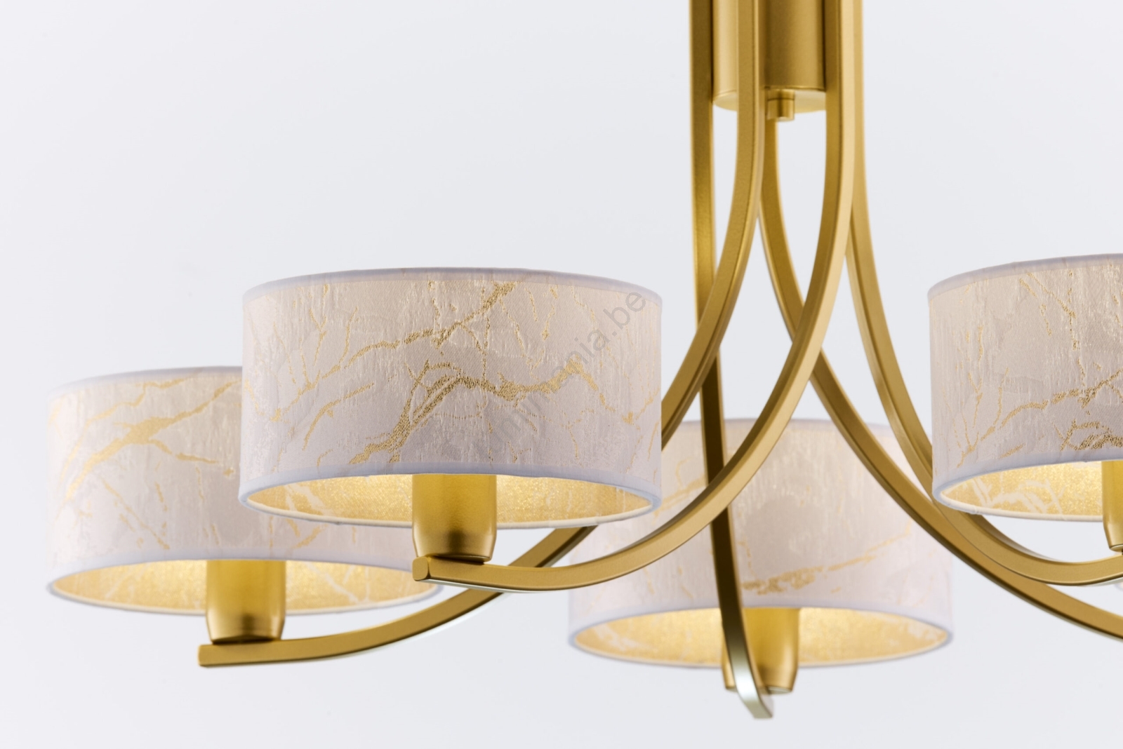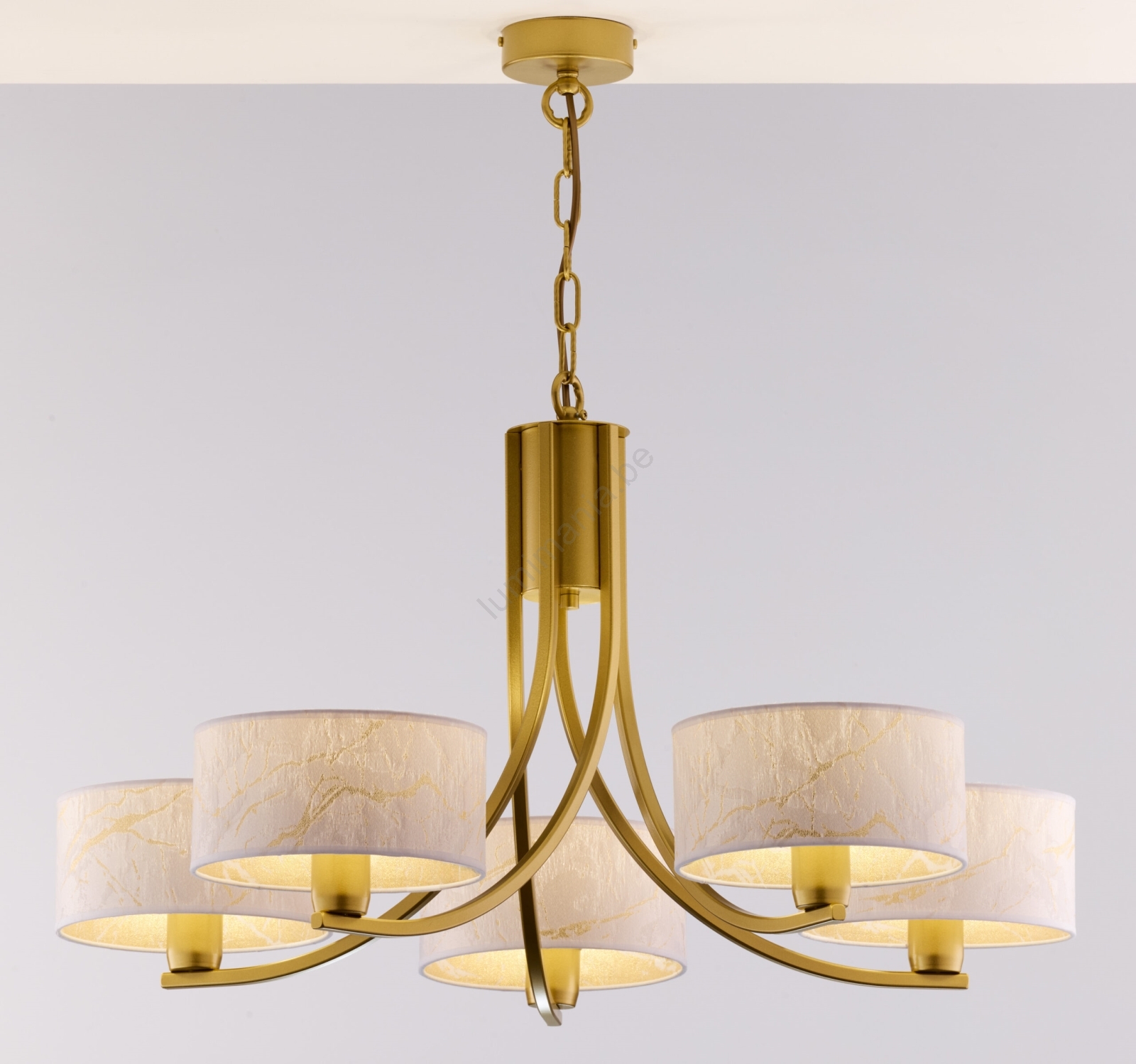 Jupiter 2097 - Kroonluchter met ketting ARTHUR 5xE27/15W/230V wit/goud/marmerdecor kenmerkt een mooi en functioneel ontwerp.  Voor het licht is een lamp met E27 fitting geschikt. Hier kunt u andere lampen tegen voordelige prijzen kopen. U heeft een interessante aanwinst voor uw woning.