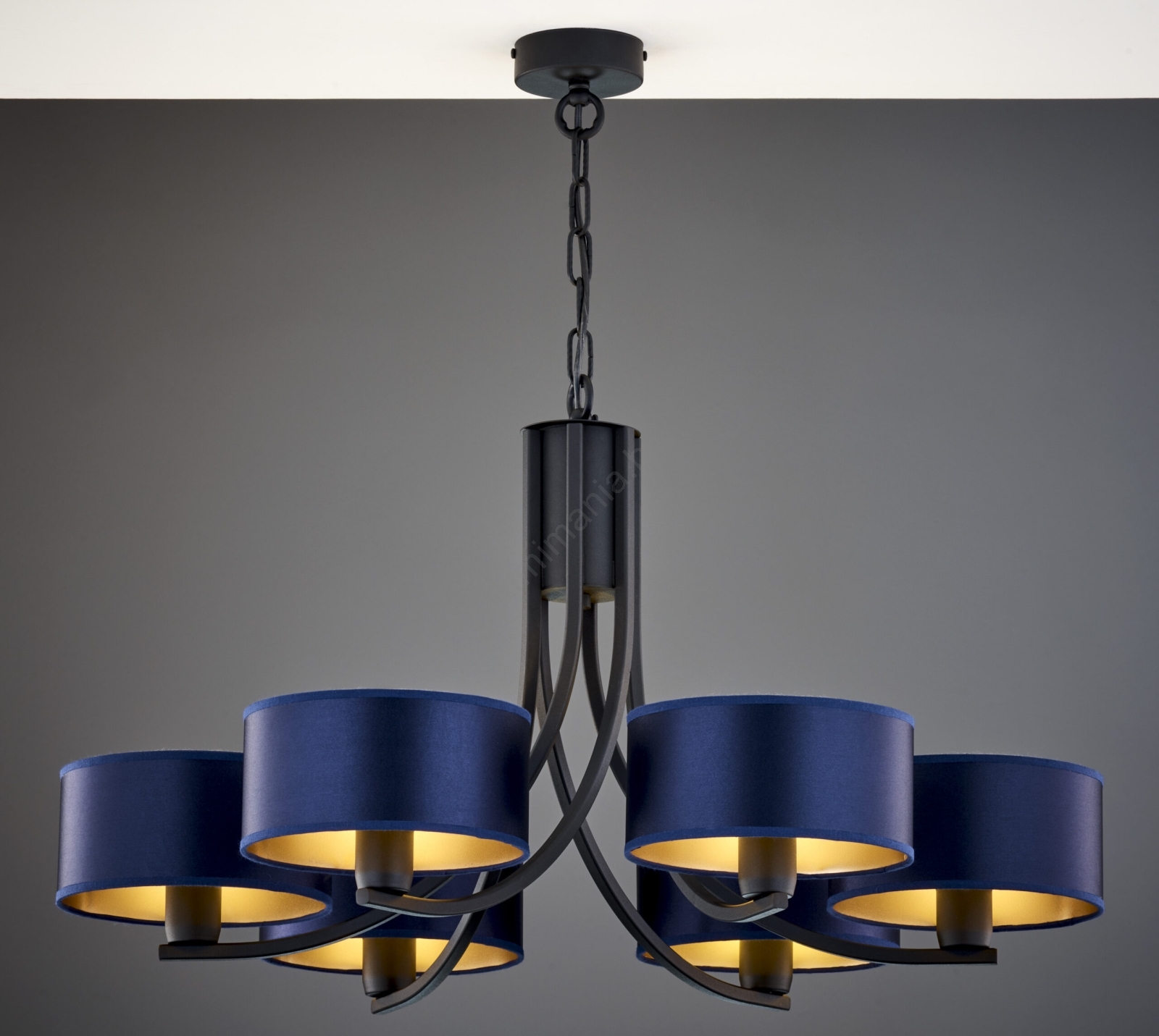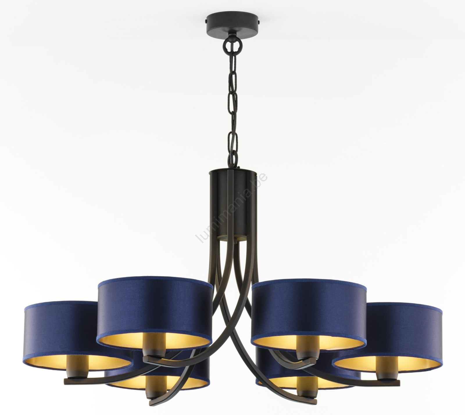 Jupiter 2102 - Kroonluchter met ketting ARTHUR 6xE27/15W/230V blauw/zwart
