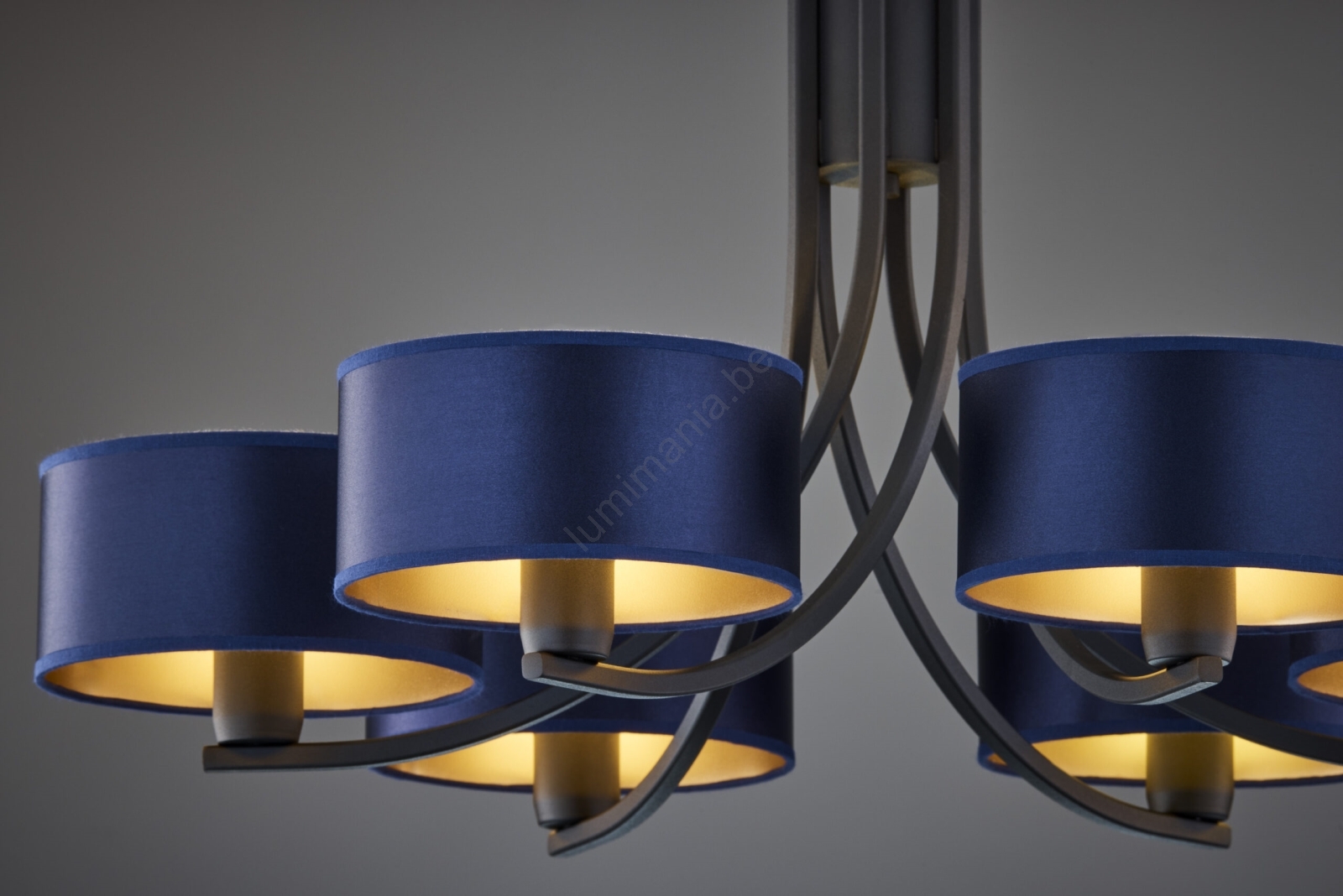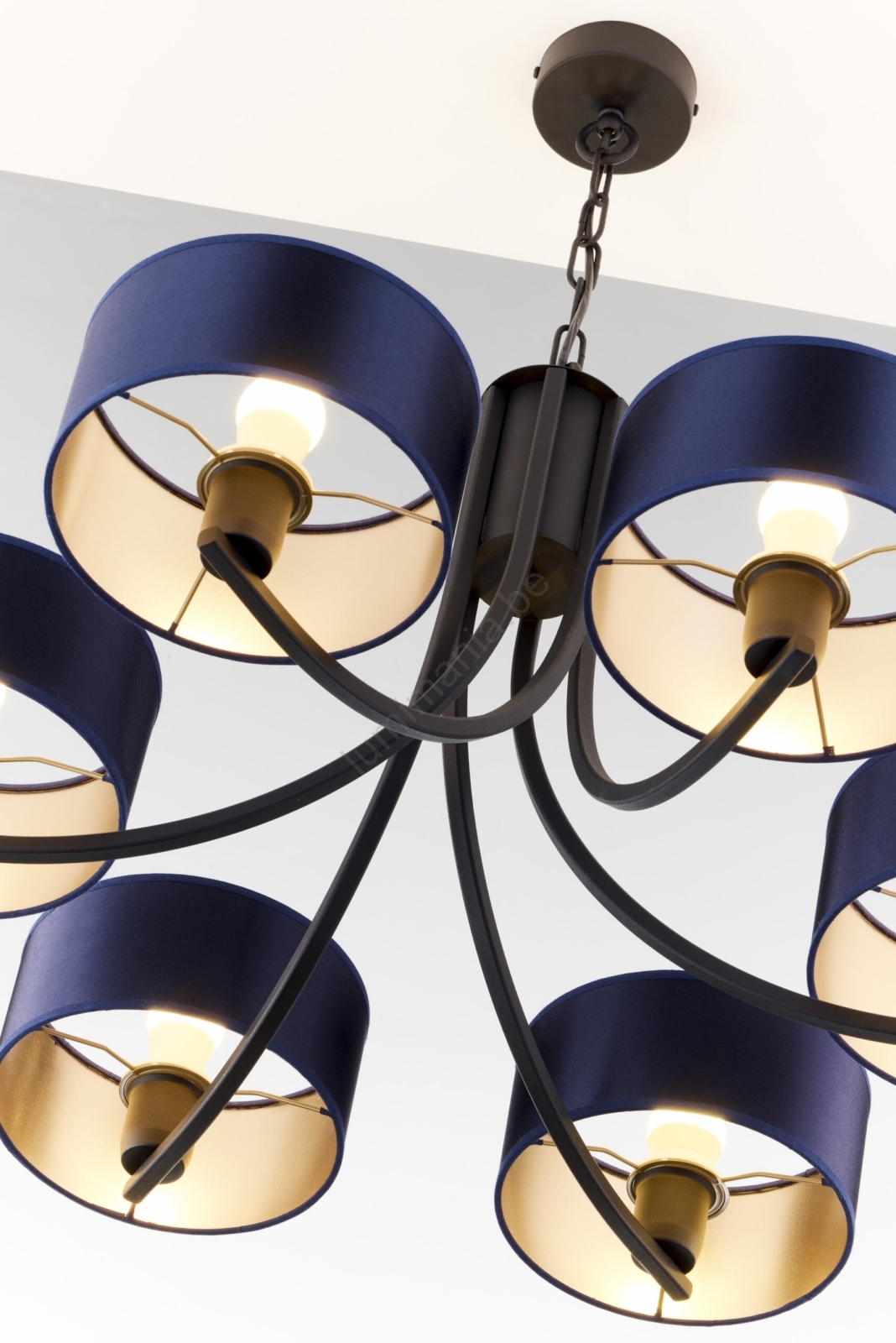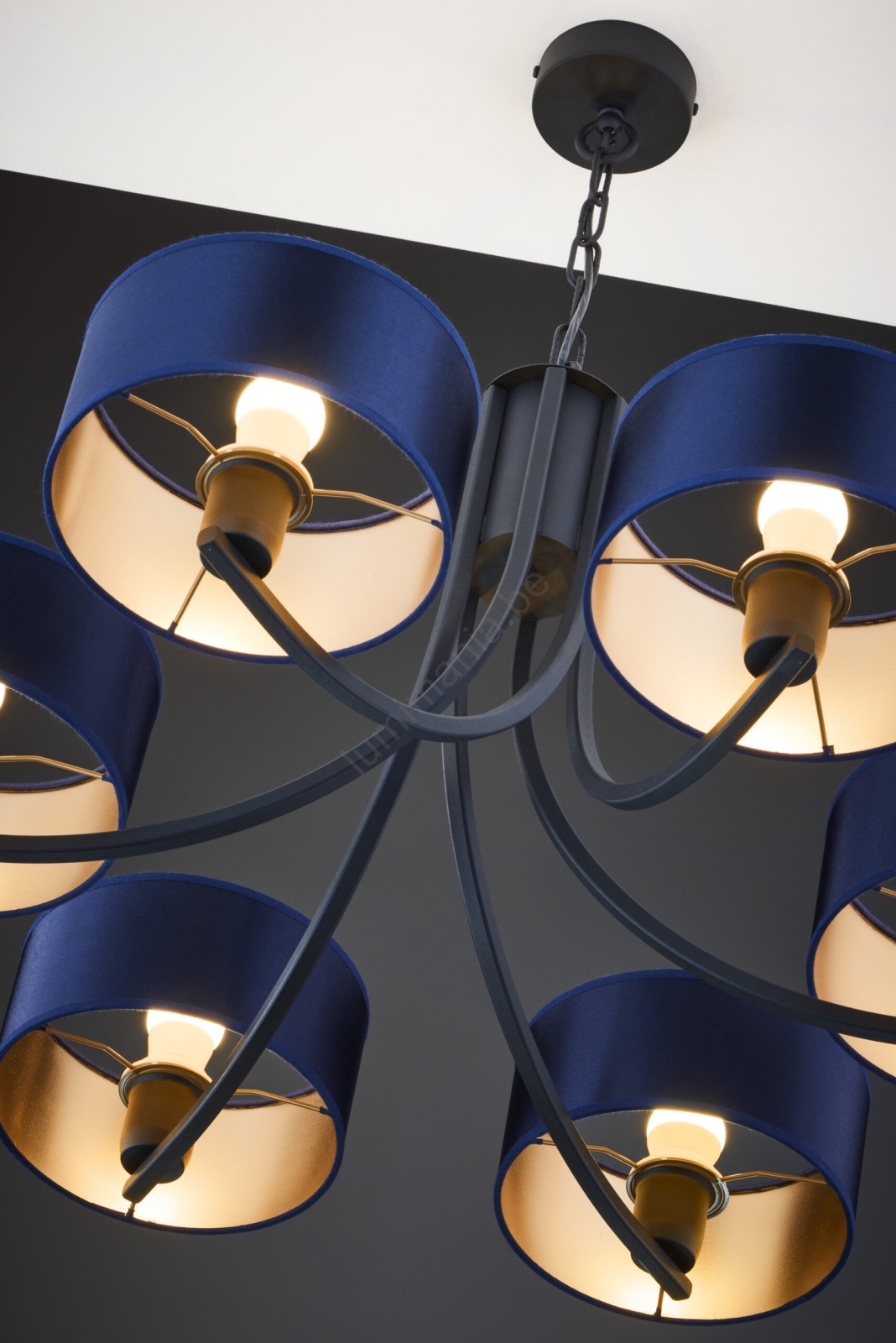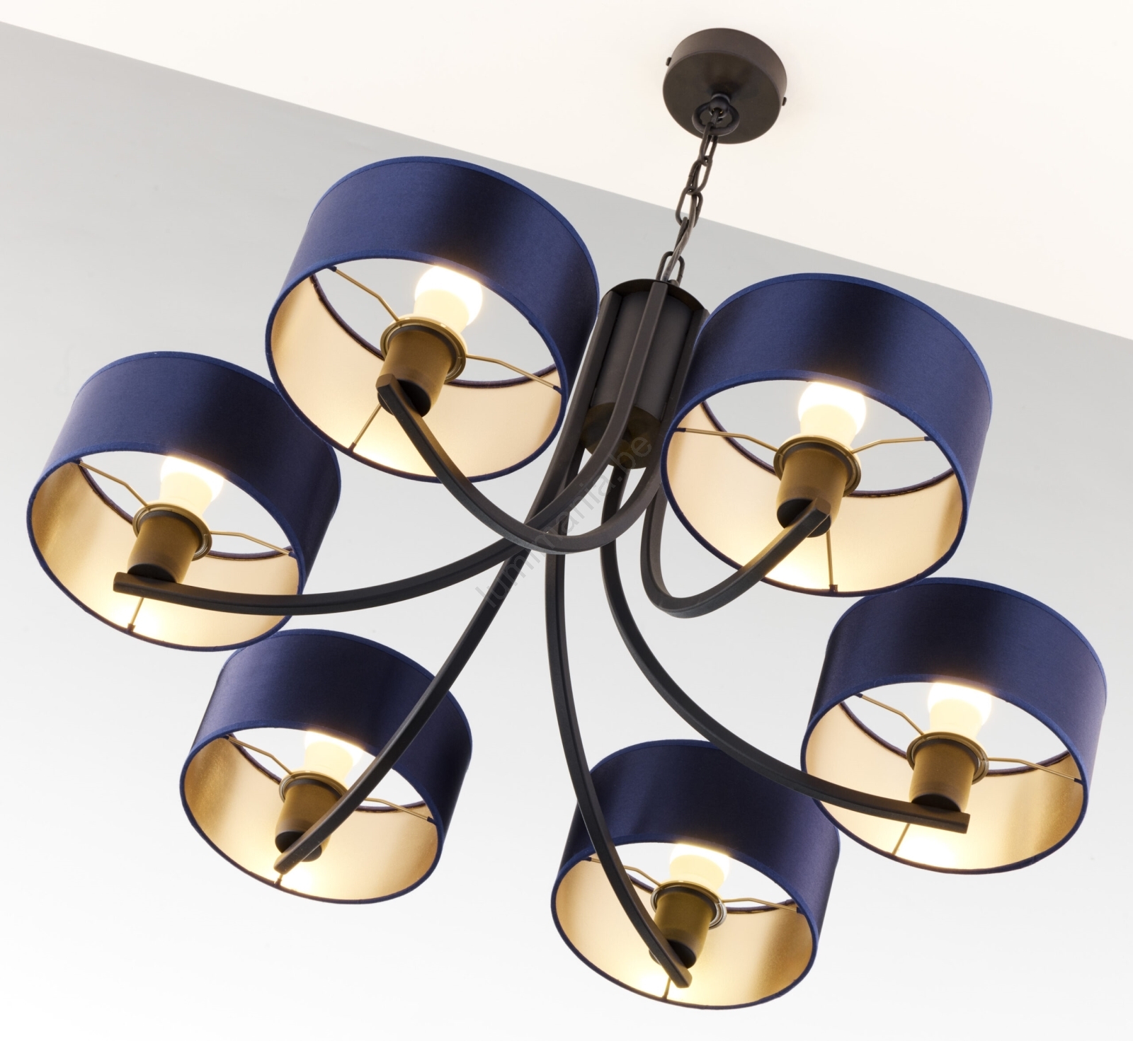 Jupiter 2102 - Kroonluchter met ketting ARTHUR 6xE27/15W/230V blauw/zwart kenmerkt een mooi en functioneel ontwerp.  Voor het licht is een lamp met E27 fitting geschikt. Hier kunt u andere lampen tegen voordelige prijzen kopen. U heeft een interessante aanwinst voor uw woning.