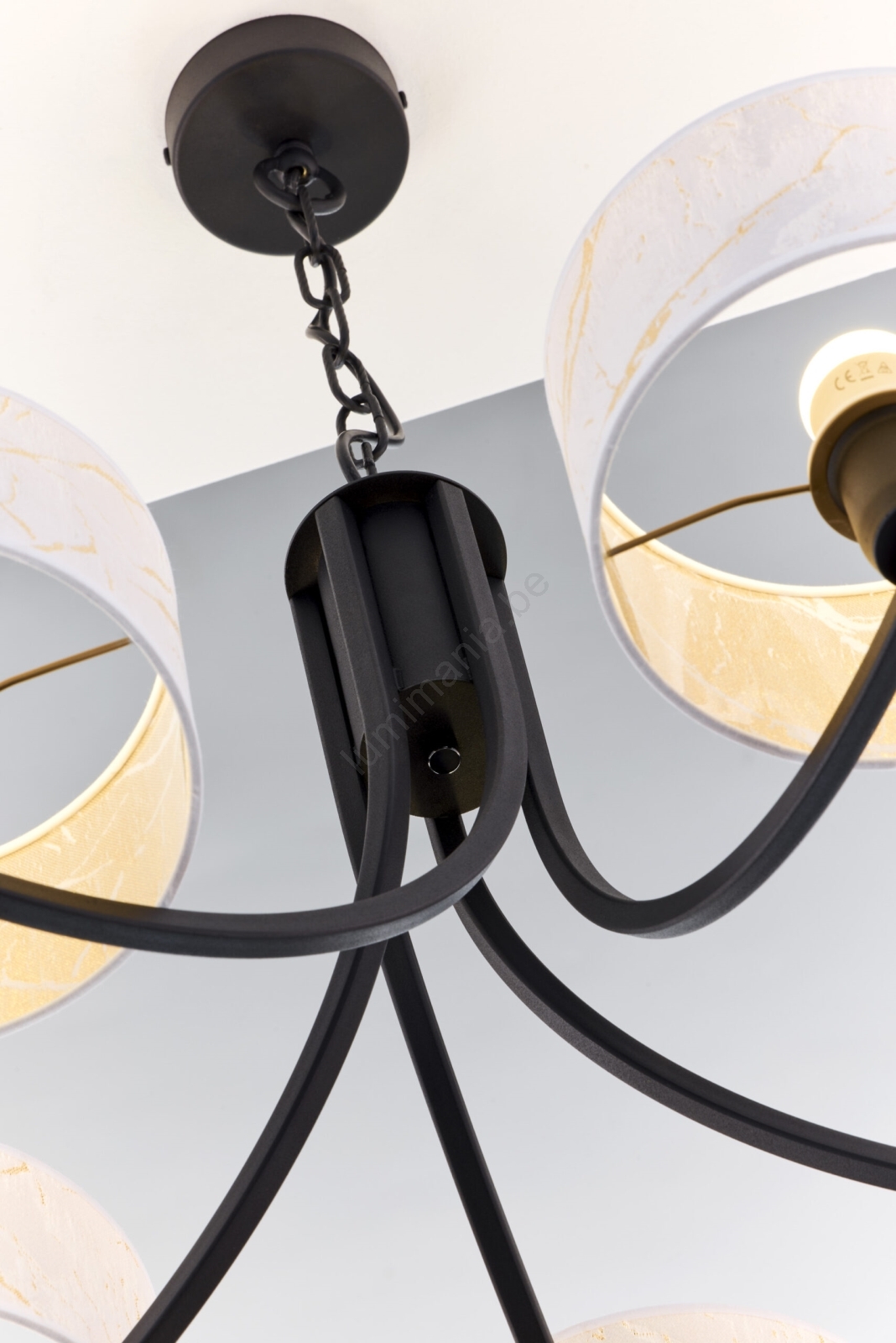 Jupiter 2104 - Kroonluchter met ketting ARTHUR 5xE27/15W/230V wit/zwart/marmerdecor kenmerkt een mooi en functioneel ontwerp.  Voor het licht is een lamp met E27 fitting geschikt. Hier kunt u andere lampen tegen voordelige prijzen kopen. U heeft een interessante aanwinst voor uw woning.