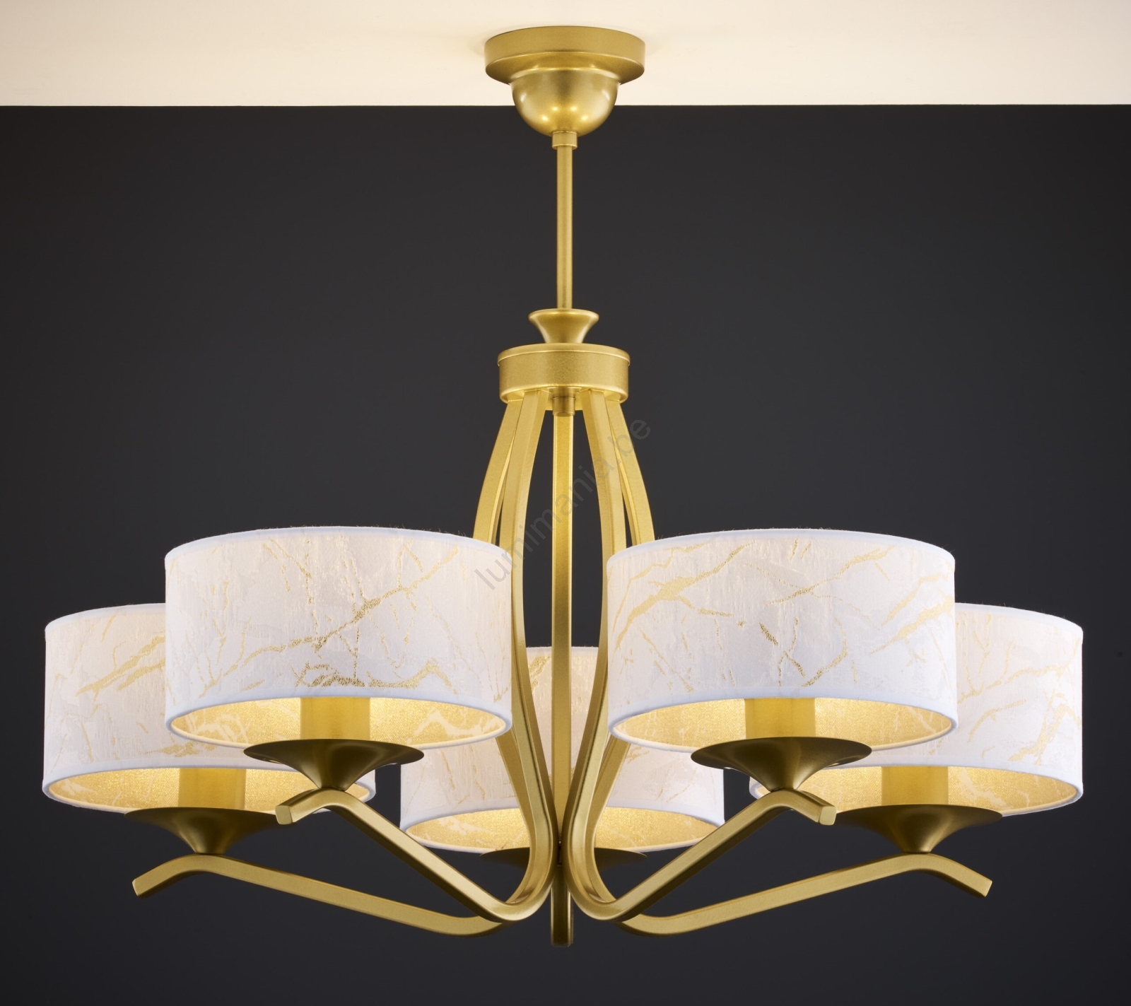 Jupiter 2110 - Hanglamp met staaf KASZMIR 5xE27/15W/230V wit/goud/marmerdecor kenmerkt een mooi en functioneel ontwerp.  Voor het licht is een lamp met E27 fitting geschikt. Hier kunt u andere lampen tegen voordelige prijzen kopen. U heeft een interessante aanwinst voor uw woning.