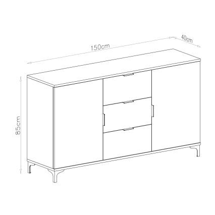• Het meubel is vervaardigd in loftstijl en wordt gekenmerkt door metalen poten en handgrepen, die een extra industriële uitstraling geven.