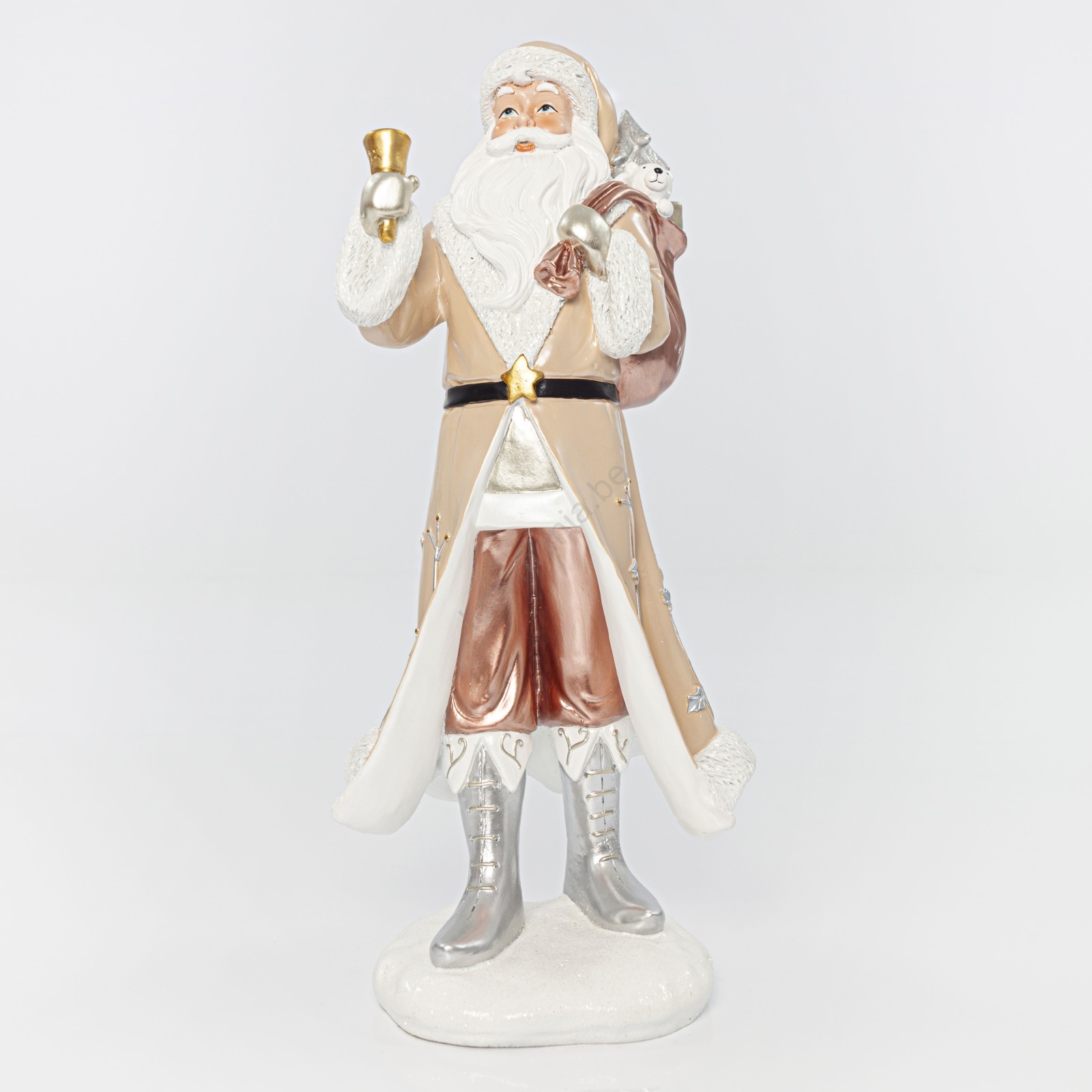 • Zijn charme komt vooral tot uiting door de glinsterende details en het belletje in zijn hand.