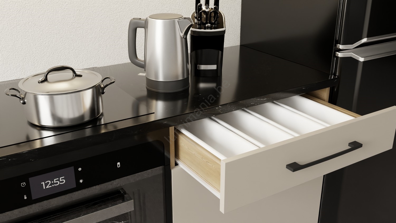 • Opstelling van de kasten is modulair, u kunt de keuken naar uw eigen wensen indelen.
