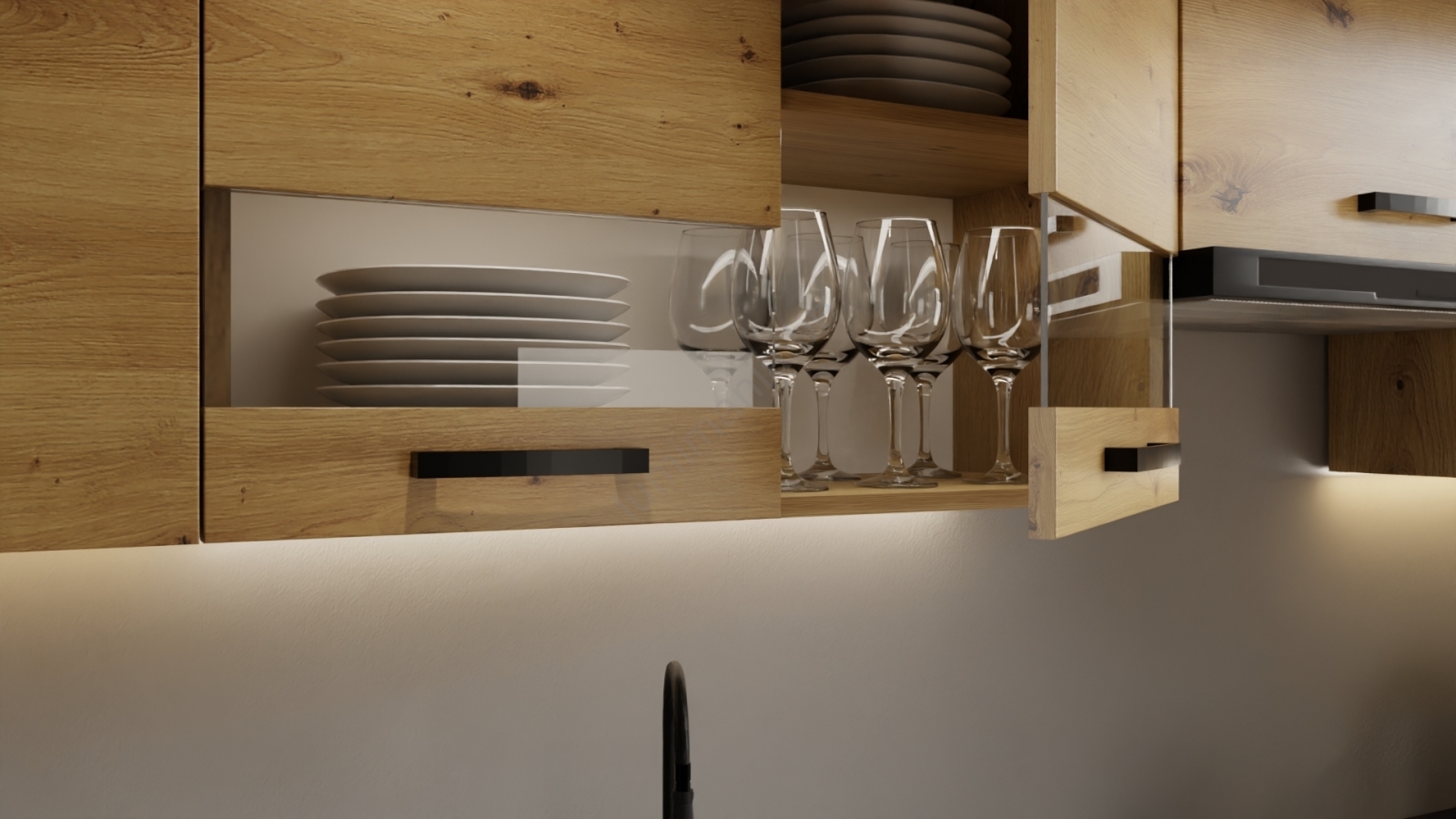 • Breng de charme van hout en de elegantie van dit keukenblok in huis, dat de nadruk legt op strakke lijnen en een tijdloze uitstraling.