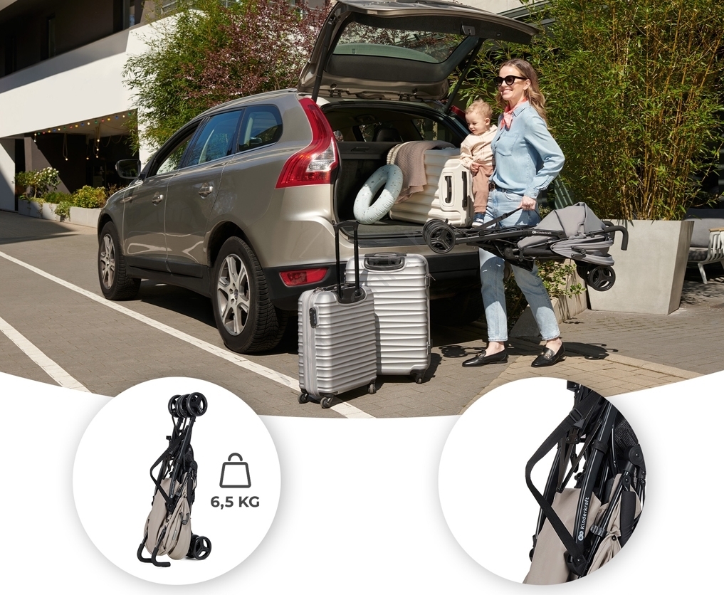 • Licht en compact kinderwagen, ideaal voor reizen en gebruik in het openbaar vervoer.