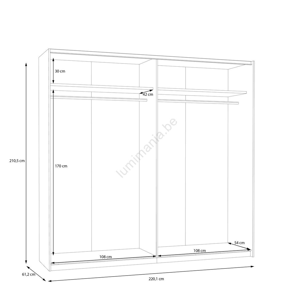 • De kast is uitgerust met hangstangen, legplanken en een royale opbergruimte voor uw kleding, tassen en seizoensgebonden spullen.