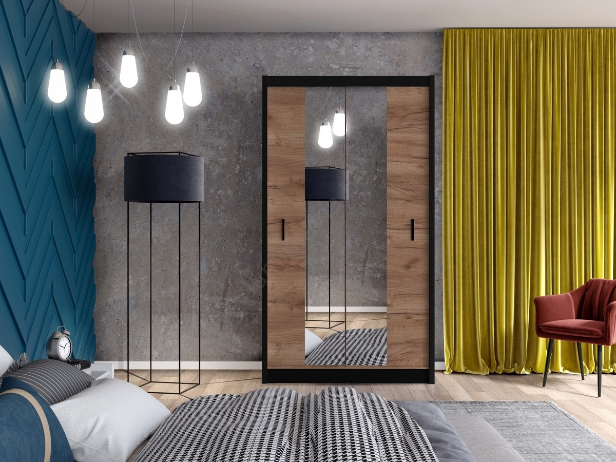 Kledingkast met spiegel MIRO 120x215 cm eiken craft/zwart