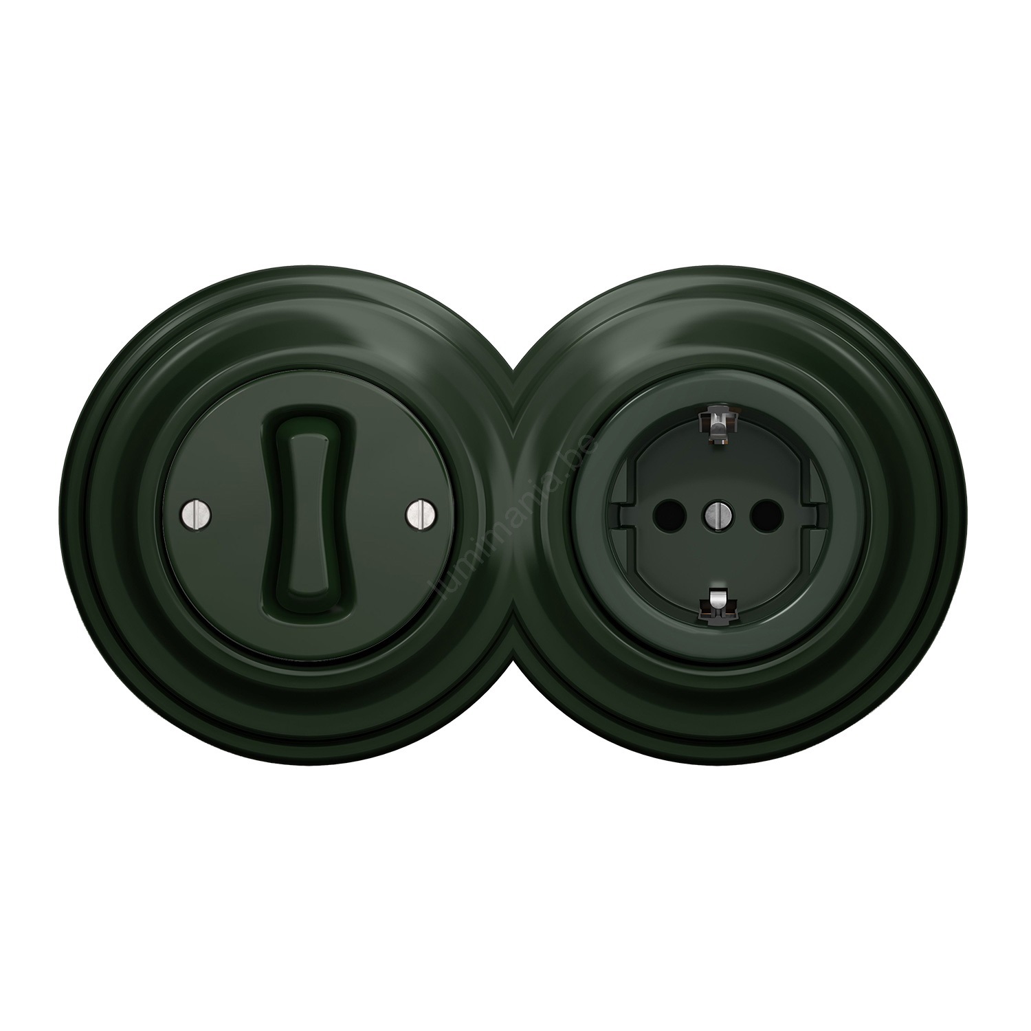 Kliklap - Retro eenpolige schakelaar nr. 1 en SCHUKO-stopcontact 230V met groen frame