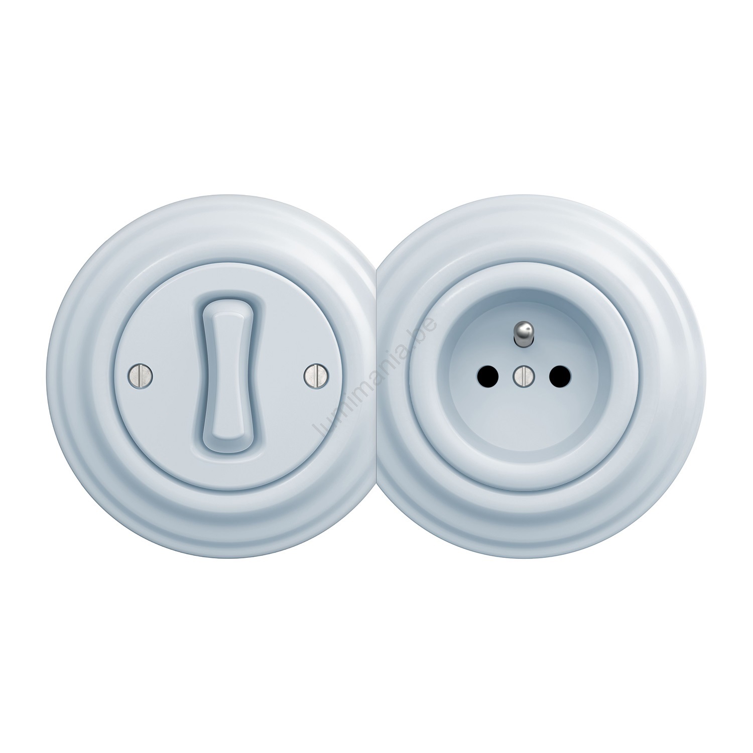 Kliklap - Retro enkelpolige schakelaar nr. 1 en 230V stopcontact met afdekraam, blauw