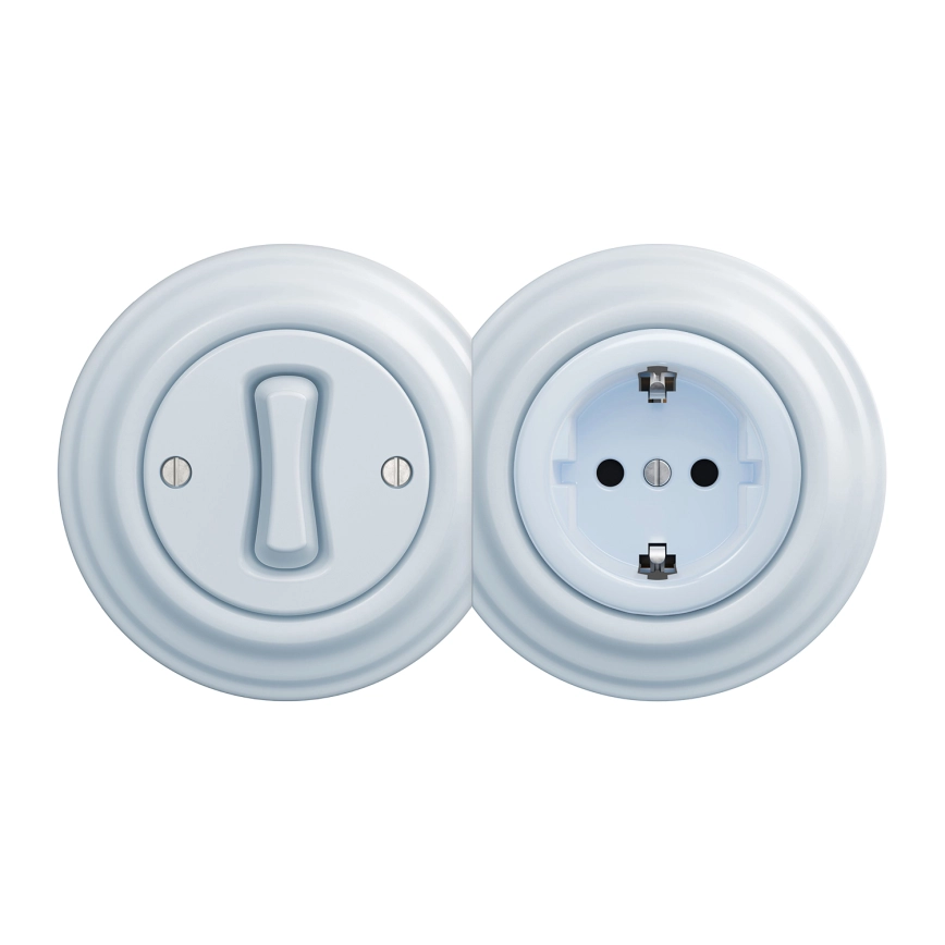 Kliklap - Retro eenpolige schakelaar nr. 1 en SCHUKO-stopcontact 230V met afdekraam, blauw