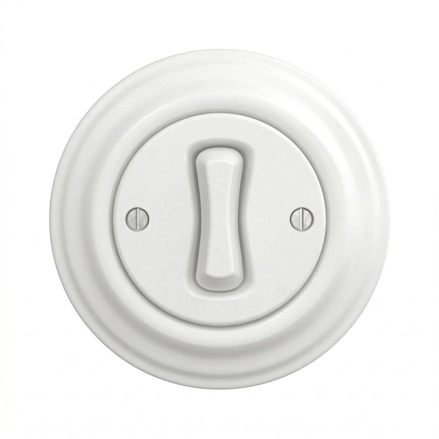 • Kliklap - Retro traplichtschakelaar met frame nr. 6, keramisch wit