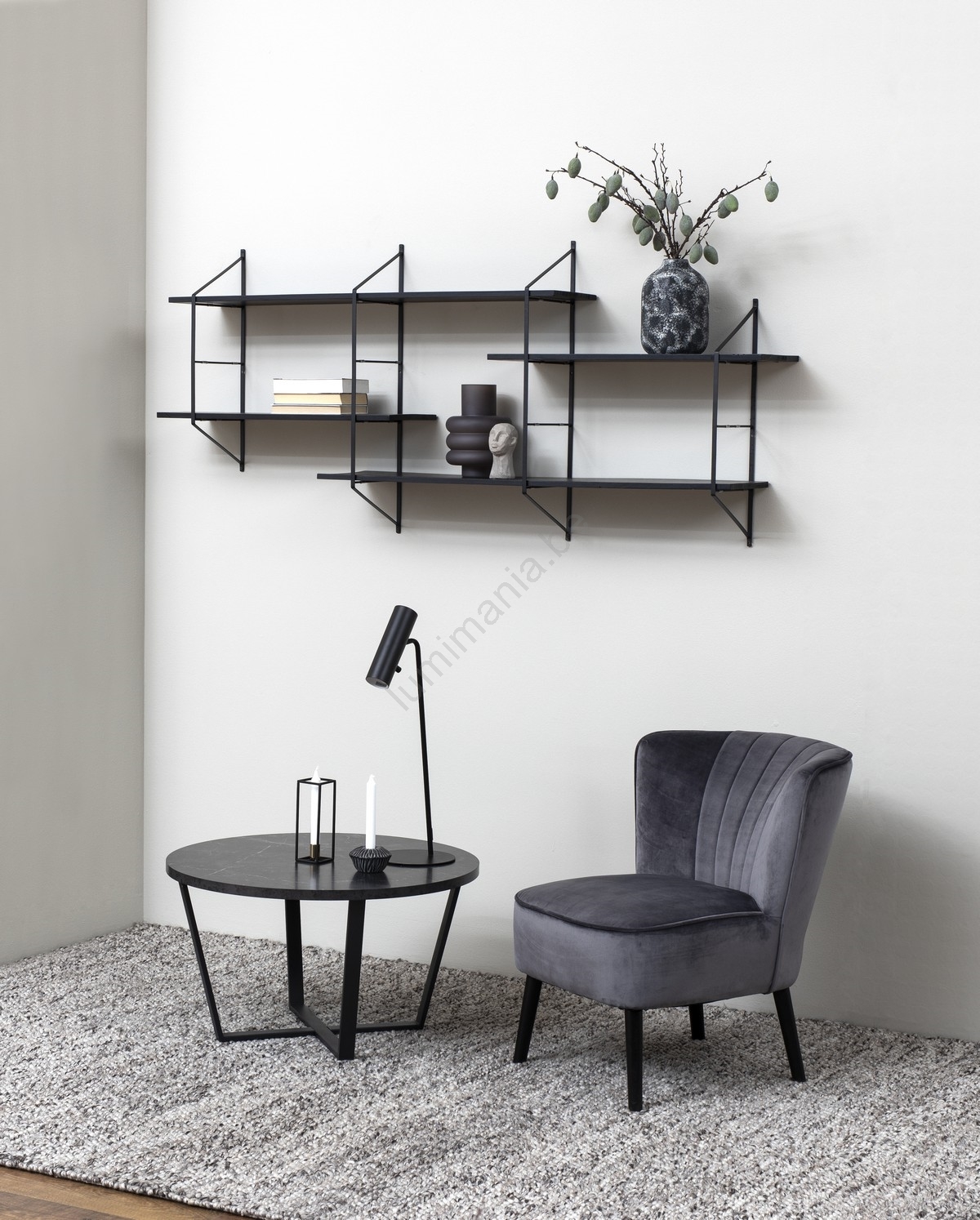• Bovenblad van zwart Izmir marmer melamine, onderstel van mat zwart gepoedercoat staal.