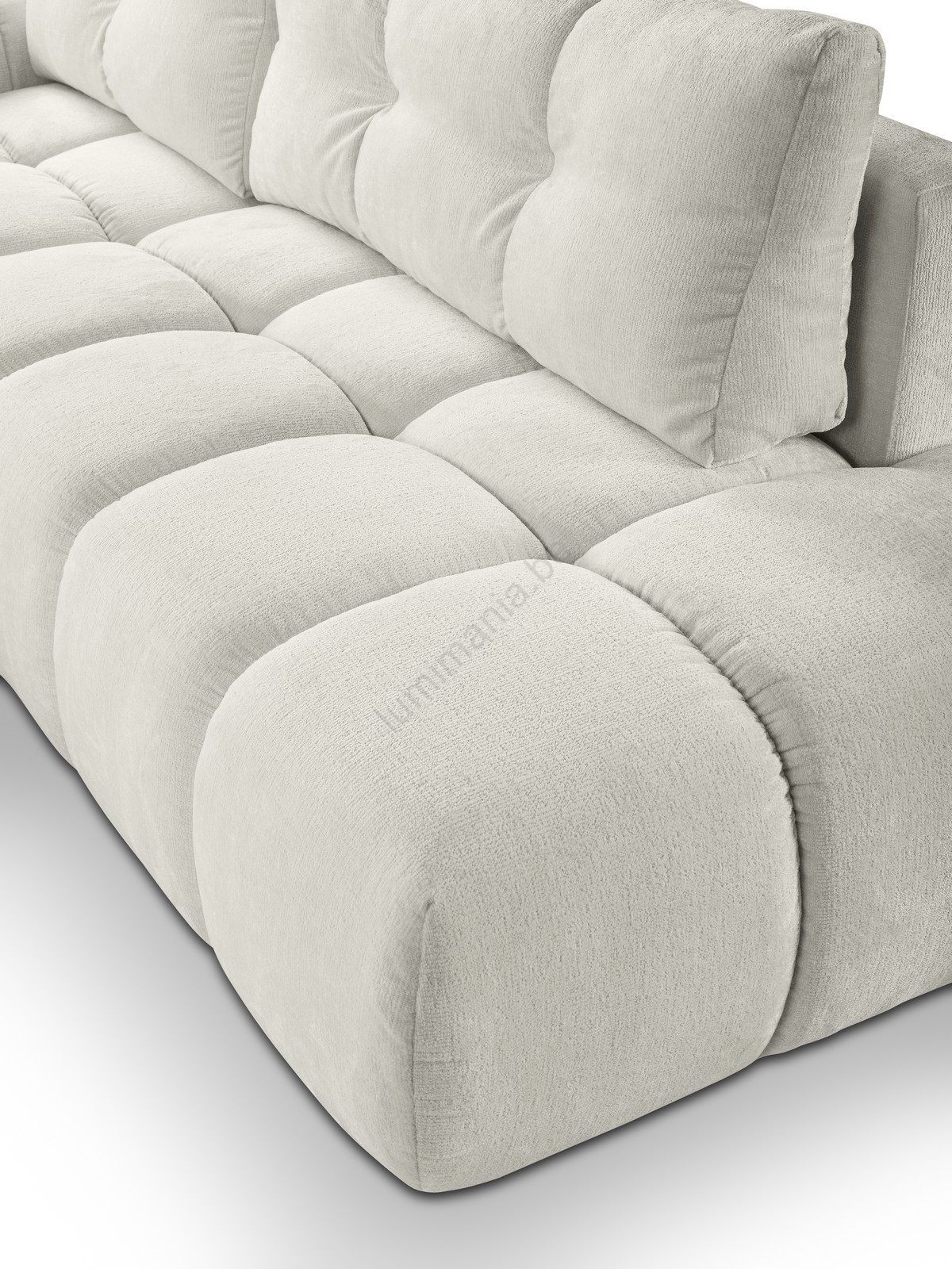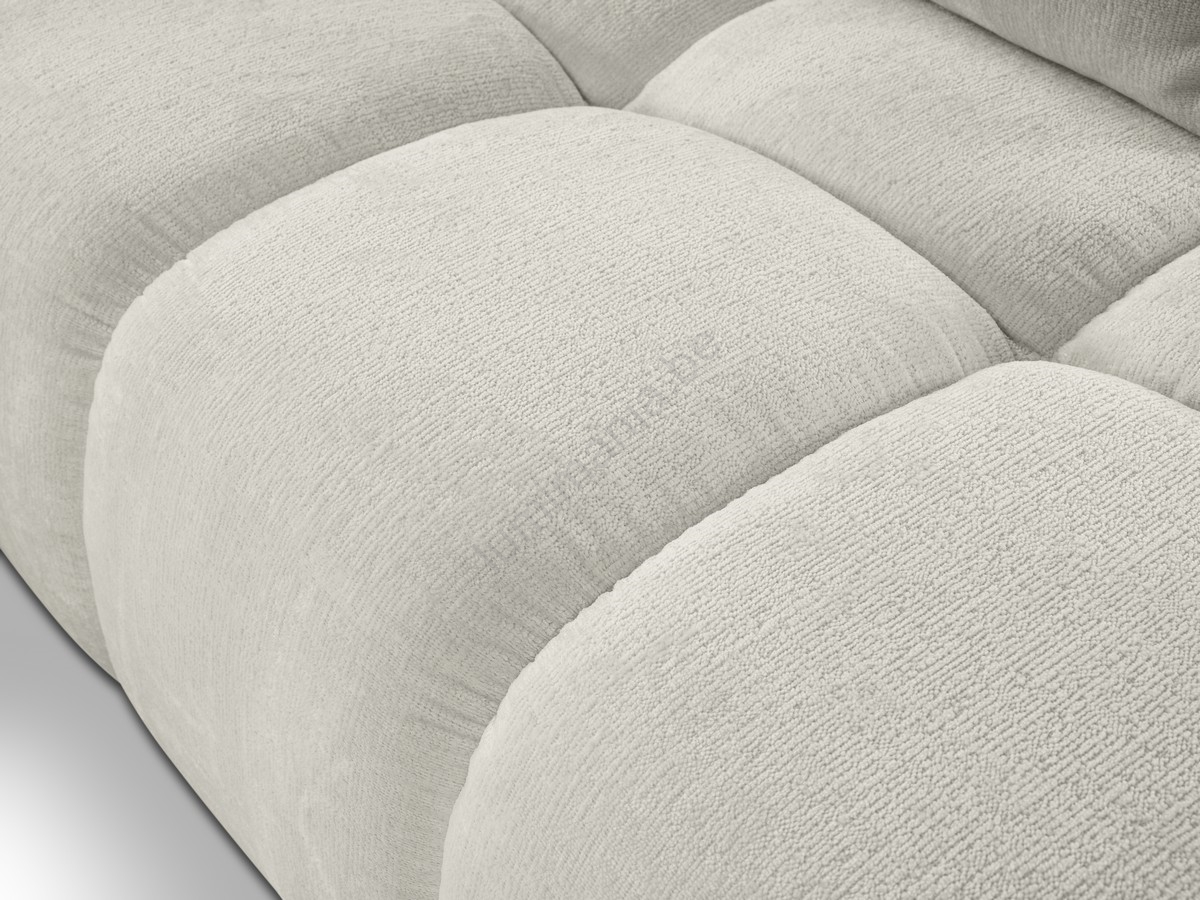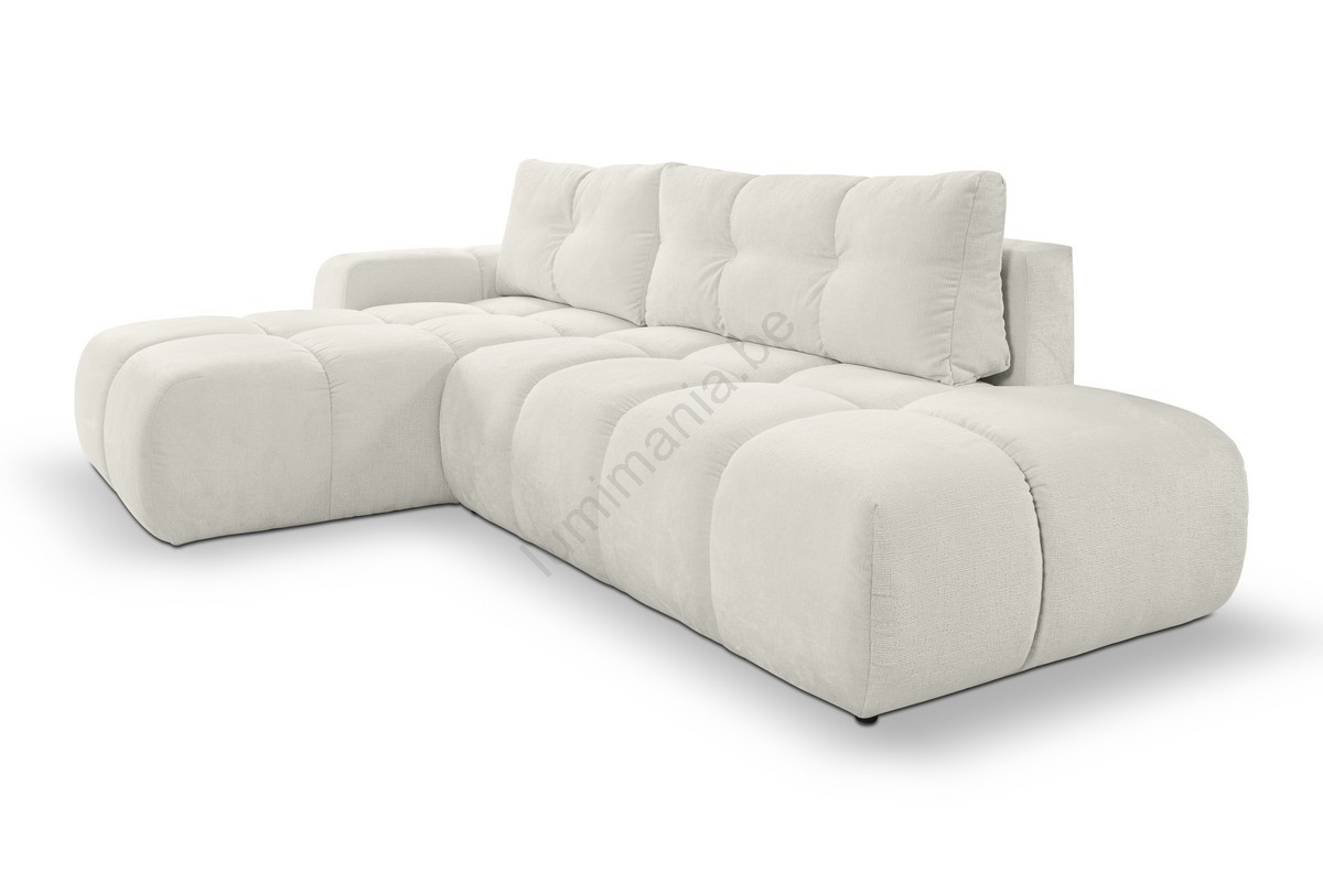 • ALMADA L-vormige uitklapbare gestoffeerde hoekbank met bergruimte, links, lichtbeige