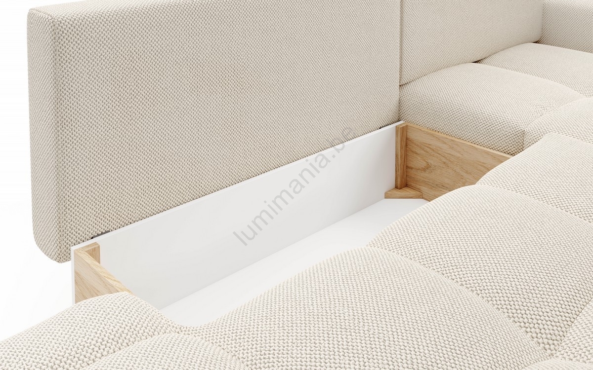 • De bank beschikt over ruime opbergruimte voor het opbergen van beddengoed en andere seizoensgebonden spullen.