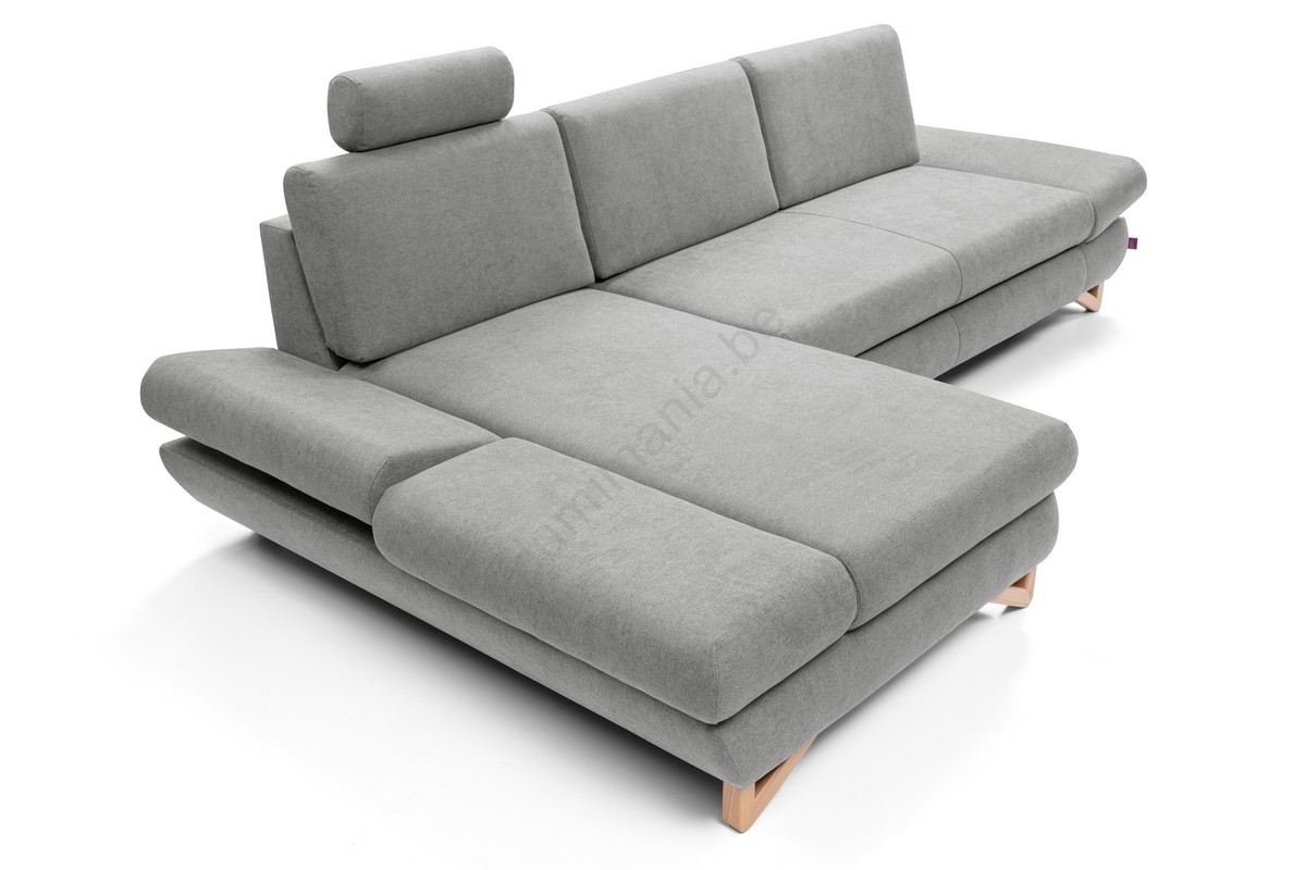 • Uitklapbare, gestoffeerde L-vormige hoekbank AVESTA met opbergruimte, links, grijs