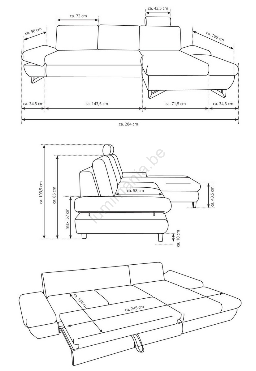 • Moderne uitschuifbare hoekbank AVESTA (rechts) is de ideale keuze voor iedereen die stijl, comfort en praktische functionaliteit zoekt.