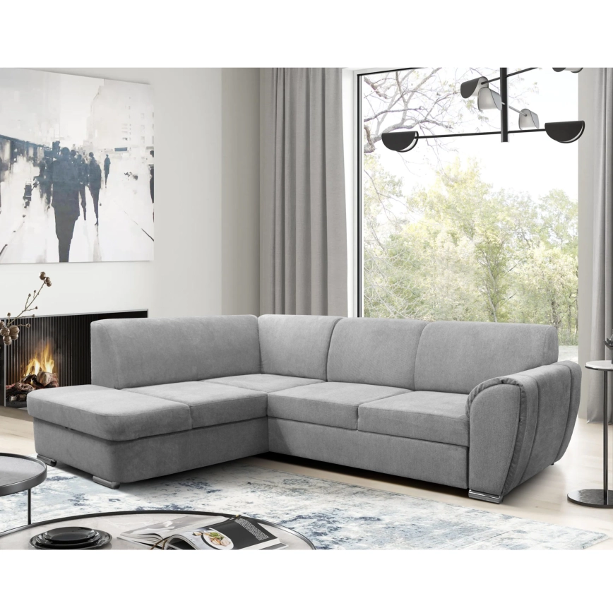 L-vormige hoekbank SERPA met slaapfunctie en opbergruimte, links, grijs