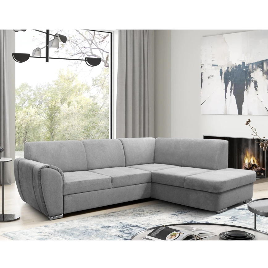 Uitklapbare L-vormige hoekbank met opbergruimte SERPA, rechts, grijs