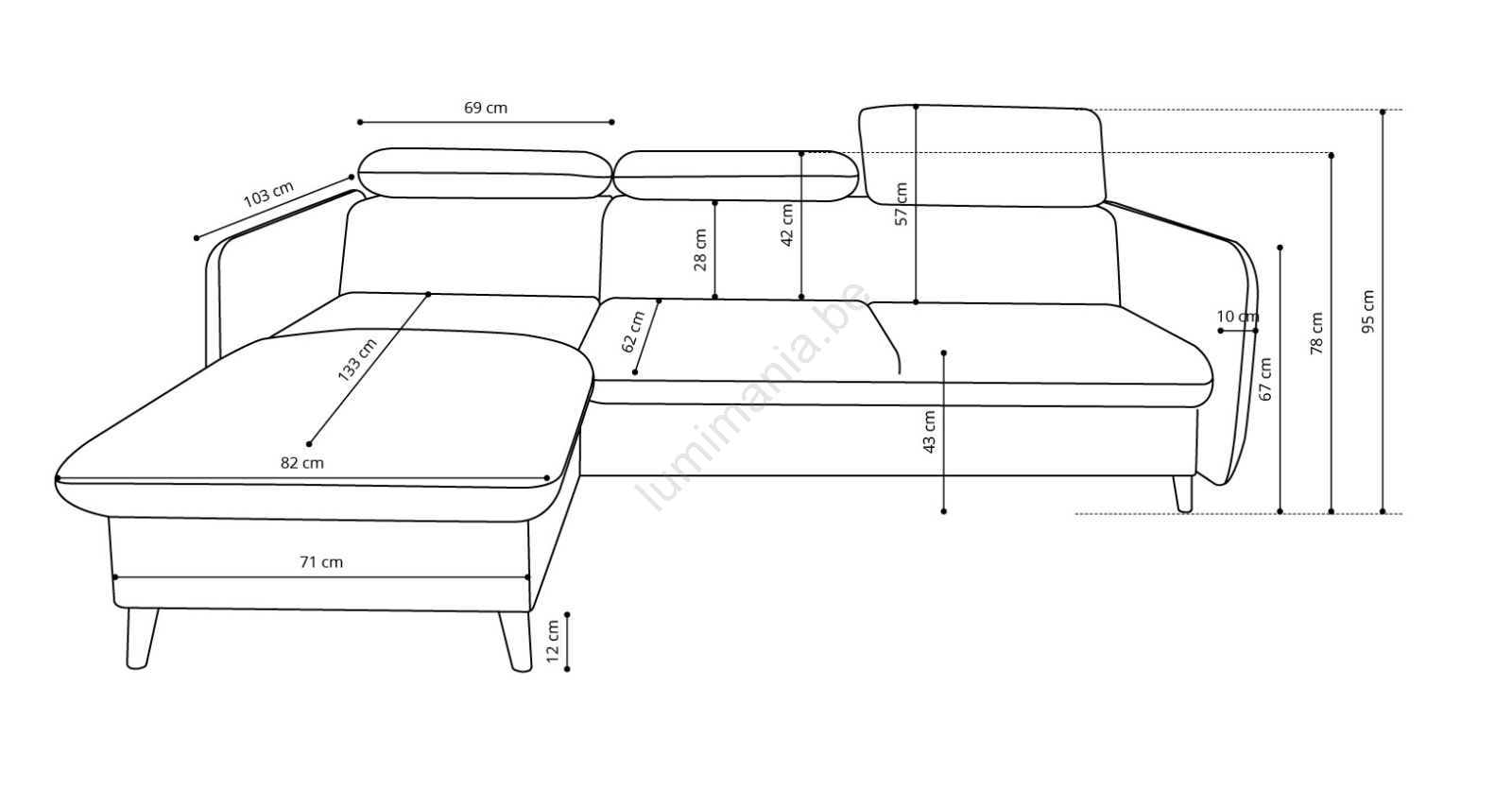• Uitschuifbare hoekbank in L-vorm is ontworpen voor een combinatie van comfort, praktisch gebruik en functionaliteit.