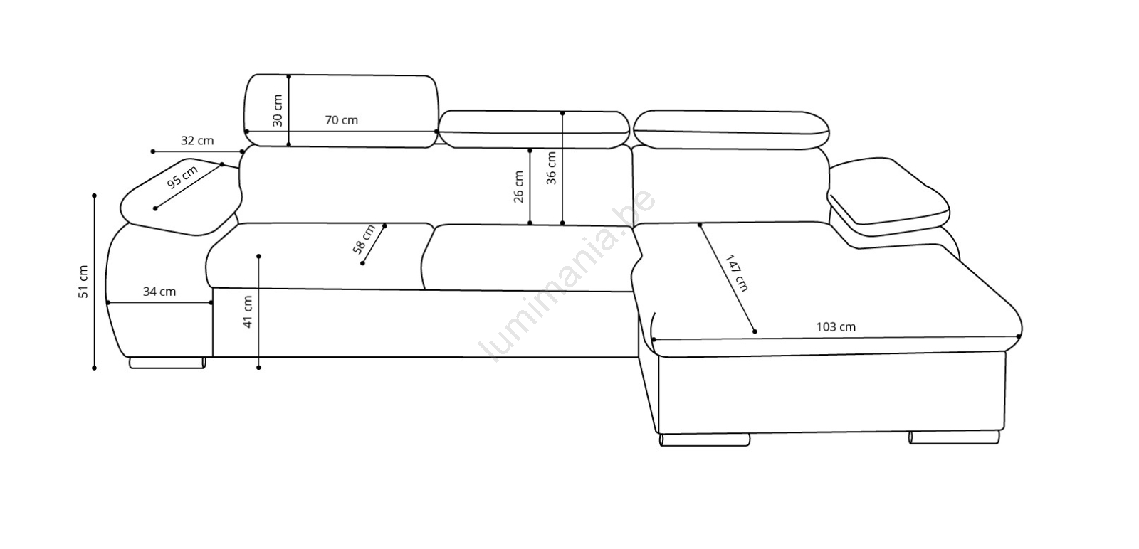 • De bank biedt 3 verstelbare hoofdsteunen.