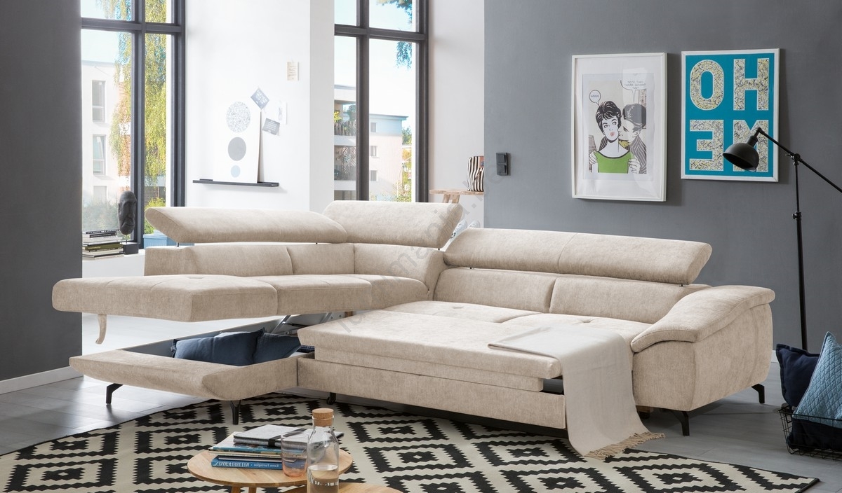 • Uitschuifbare hoekbank met opbergruimte in L-vorm BRESCIA rechts beige