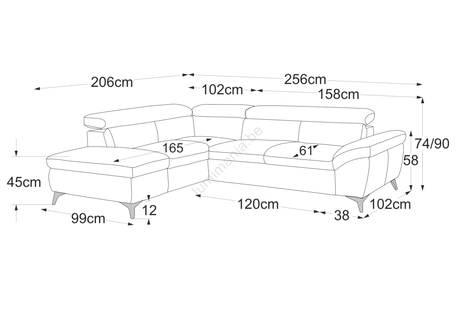 • Met een zitdiepte van 61 cm, een zithoogte van 45 cm en een rugleuninghoogte van 74 tot 90 cm biedt hij comfortabel en ergonomisch zitcomfort.