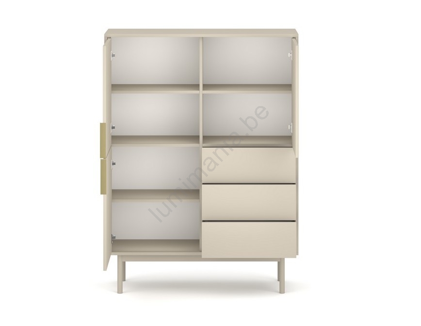 • Het heeft twee deurtjes aan de linkerkant en één deur en drie lades aan de rechterkant, voor overzichtelijke opbergruimte.