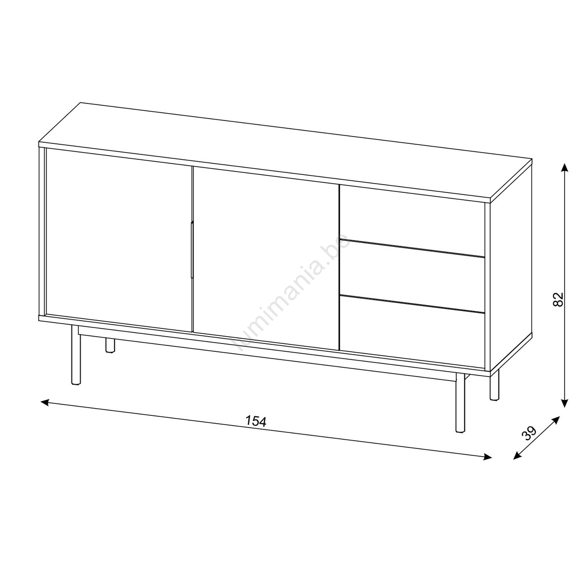 • Het heeft twee deuren aan de linkerzijde en drie laden aan de rechterzijde voor overzichtelijke opbergruimte.