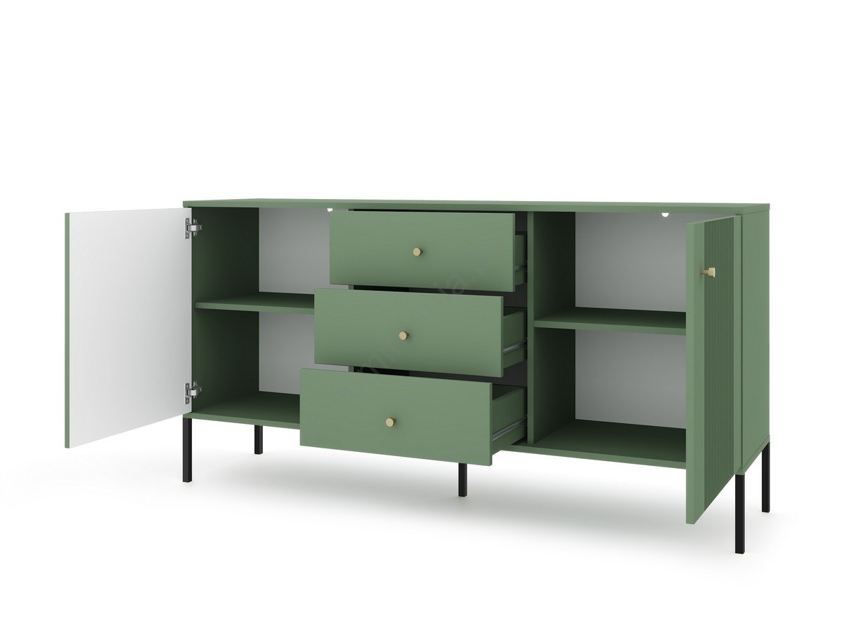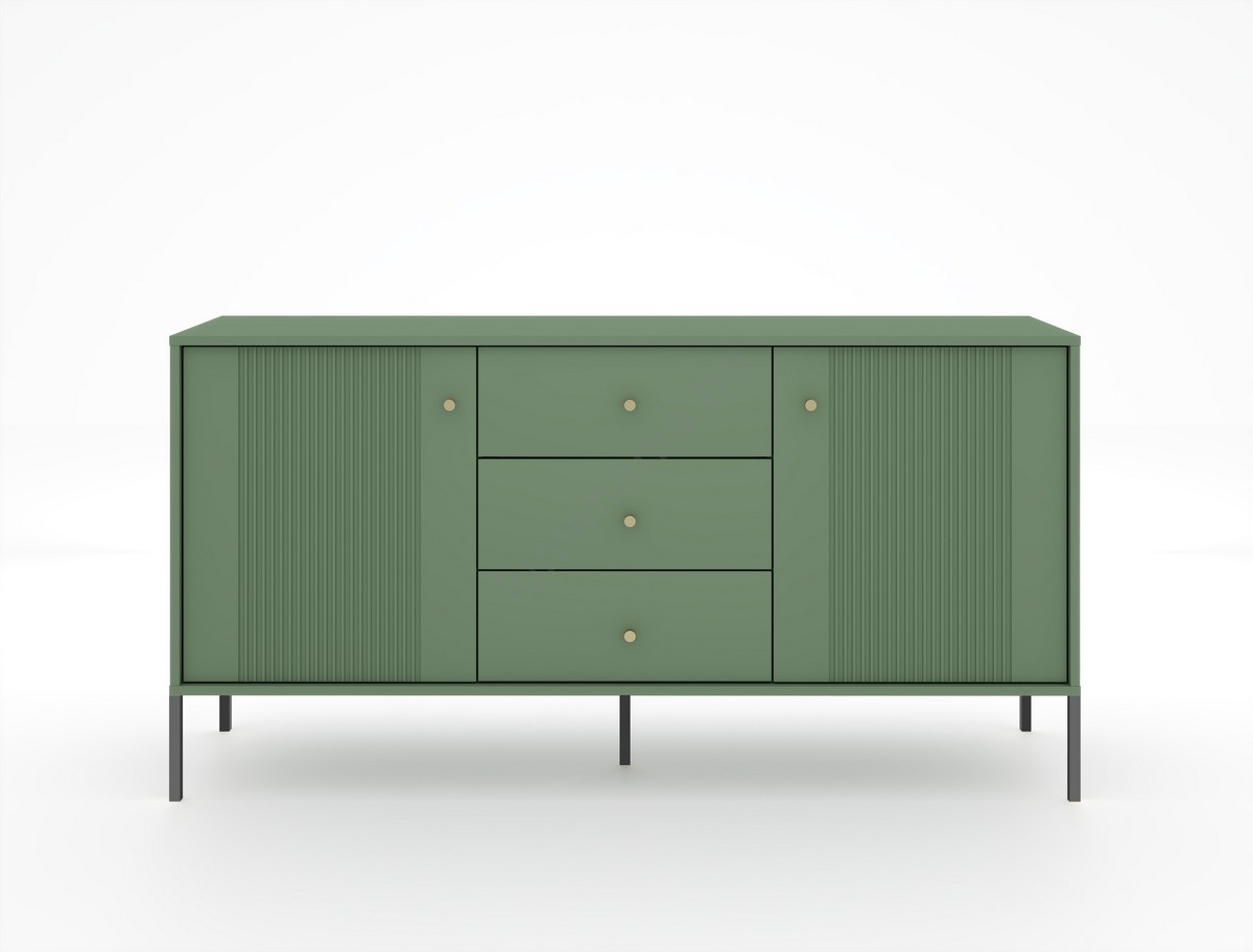 • Voorzien van drie centrale lades en twee opbergvakken met deuren met verticale ribbelstructuur.
