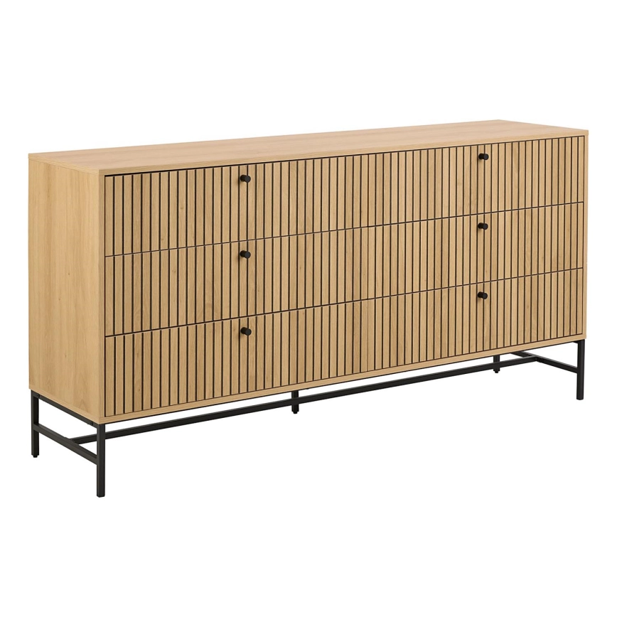 • Deze ladekast in eikenlook met lamellenfront voegt stijl en functionaliteit toe aan uw hal.