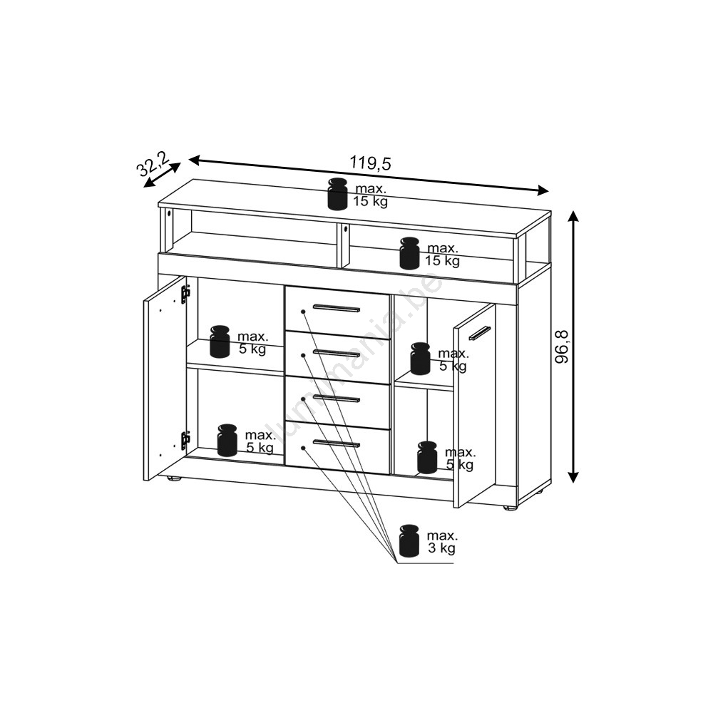 • Het bovenblad is ruim genoeg voor het plaatsen van decoraties, elektronica of andere benodigdheden.