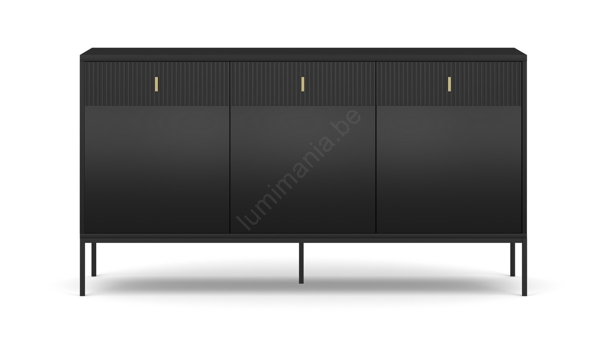 • Voorzien van drie onderste deurtjes met royale opbergruimte en drie lades met handgrepen en verticale ribbeling.