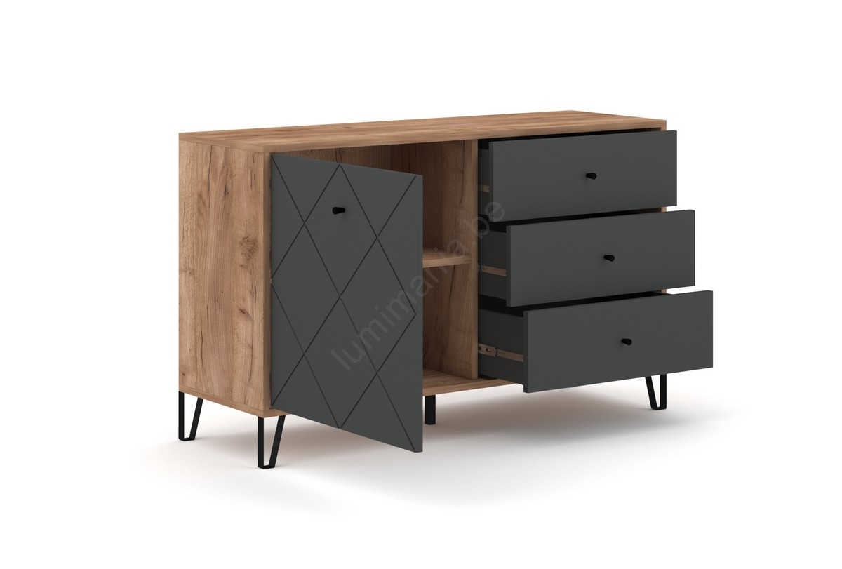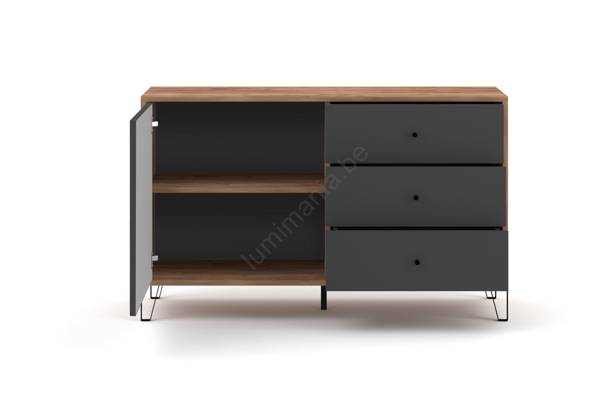 • Voorzien van één deur aan de linkerzijde en drie lades aan de rechterzijde voor overzichtelijke opbergruimte.