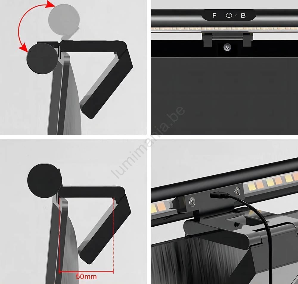 • Plaats de lamp eenvoudig op de bovenrand van je monitor (de klem kan tot maximaal 5 cm geopend worden).