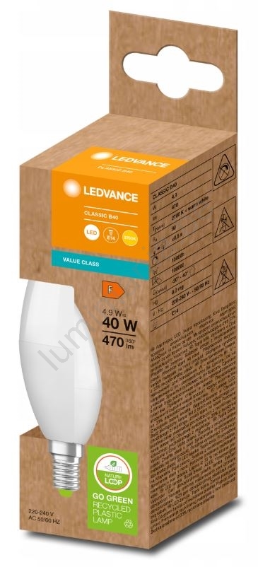 • LED-lamp van gerecycled plastic B40 E14/4,9W/230V 2700K - Ledvance