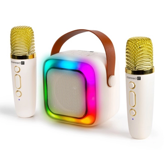 CONNECT IT CSP-1010-BG - LED RGB-luidspreker met 2 draadloze microfoons, 5 W / 1200 mAh + 2×400 mAh, crème/goud