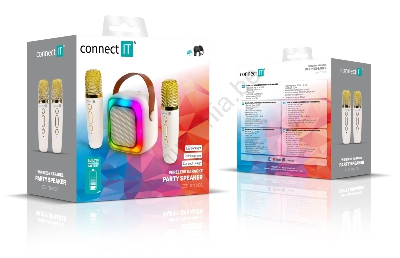 • Deze party-luidspreker 2Mic Karaoke verrast met helder geluid en een spectaculaire lichtshow.