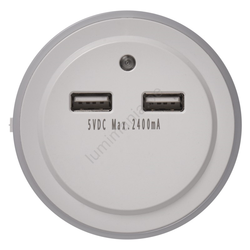 LED nachtlampje voor stopcontact met lichtsensor+2xUSB 3xLED/0,3W/230V