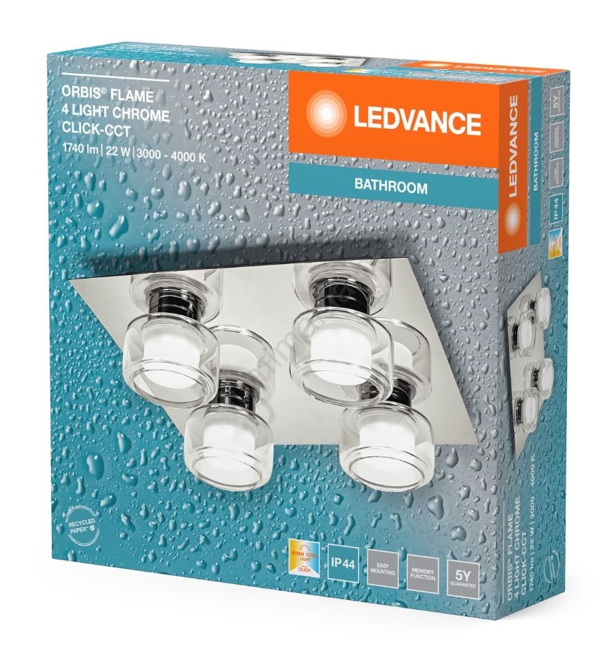• Ledvance - LED Badkamer plafondlamp ORBIS FLAME 4xLED/5,5W/230V 3000/4000K IP44 chroom