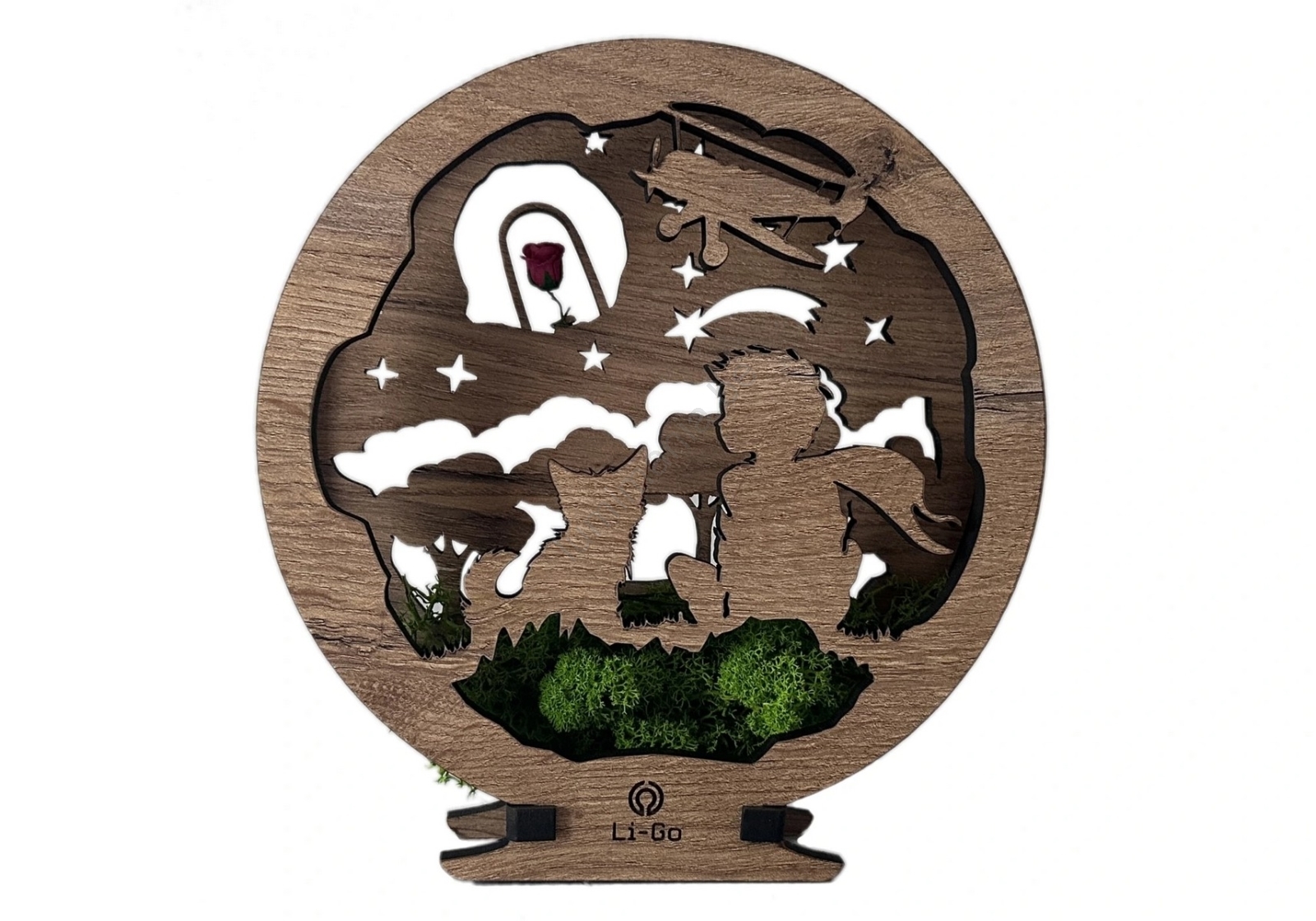 Li-Go 23634/DUB2 - Dimbare LED tafeldecoratie LED/12W/230V 20x22 cm eiken/De Kleine Prins met een roos