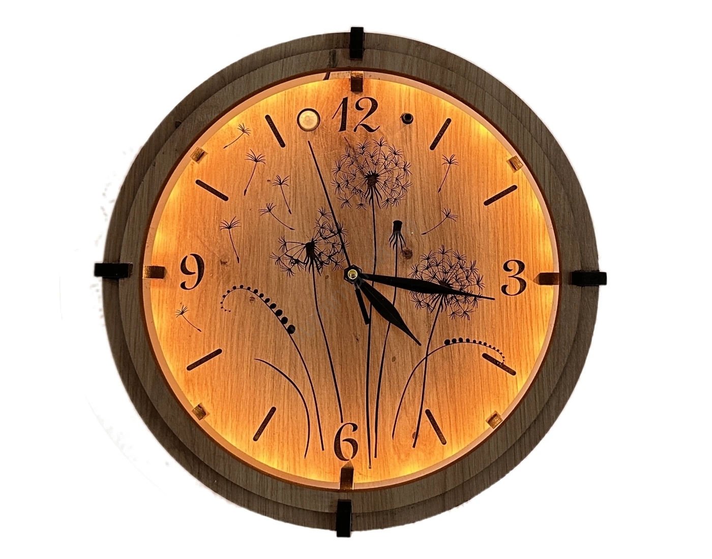 • Li-Go 23688/DUB2 - Dimbare LED-klok met bewegingssensor, LED/5V, 20000 mAh + 1xAA, Ø 32 cm, eik/paardenbloem