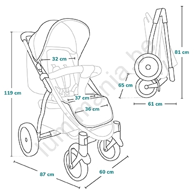 • De kinderwagen is voorzien van bergruimte voor boodschappen of speelgoed.
