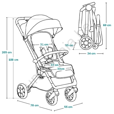 • Systeem automatisch opvouwen - na het indrukken van een knop vouwt de kinderwagen zichzelf op.