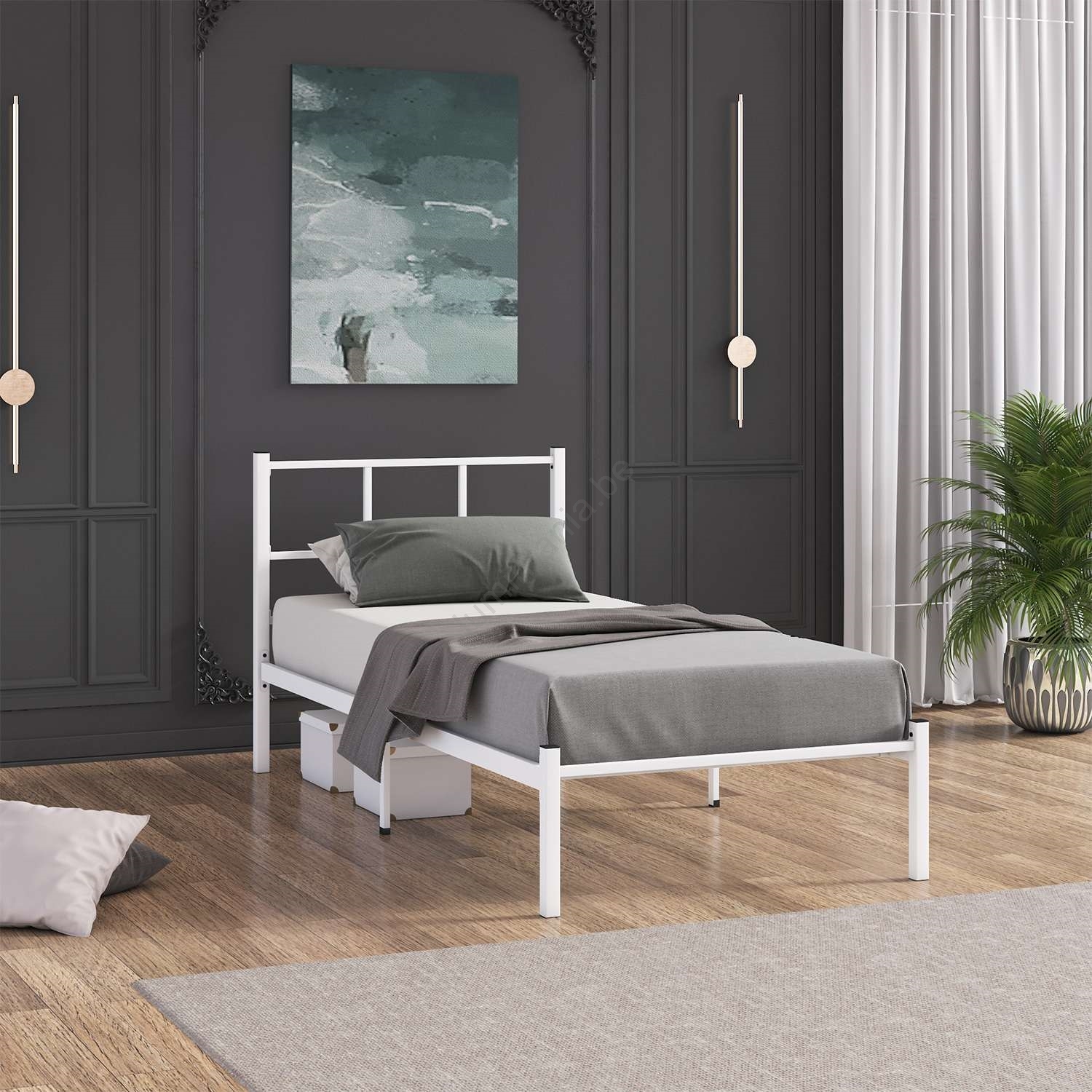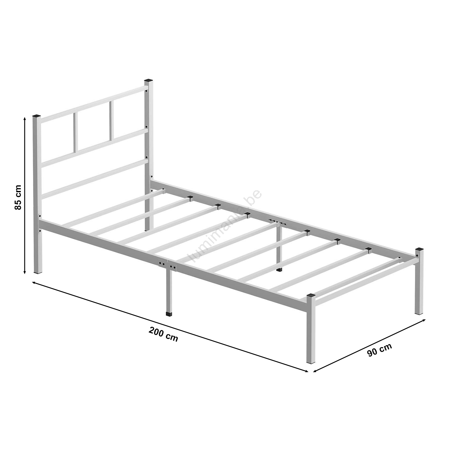 Metalen eenpersoonsbed ROVAN 90 x 200 cm, wit, max. belasting 120 kg