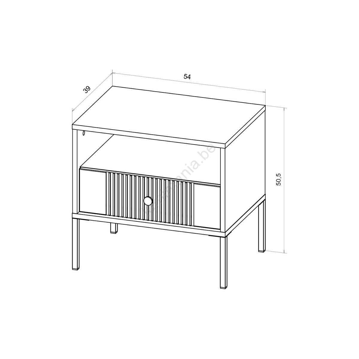 • Voorzien van één open plank en één lade, afgewerkt met verticale ribben voor een verfijnd visueel effect.