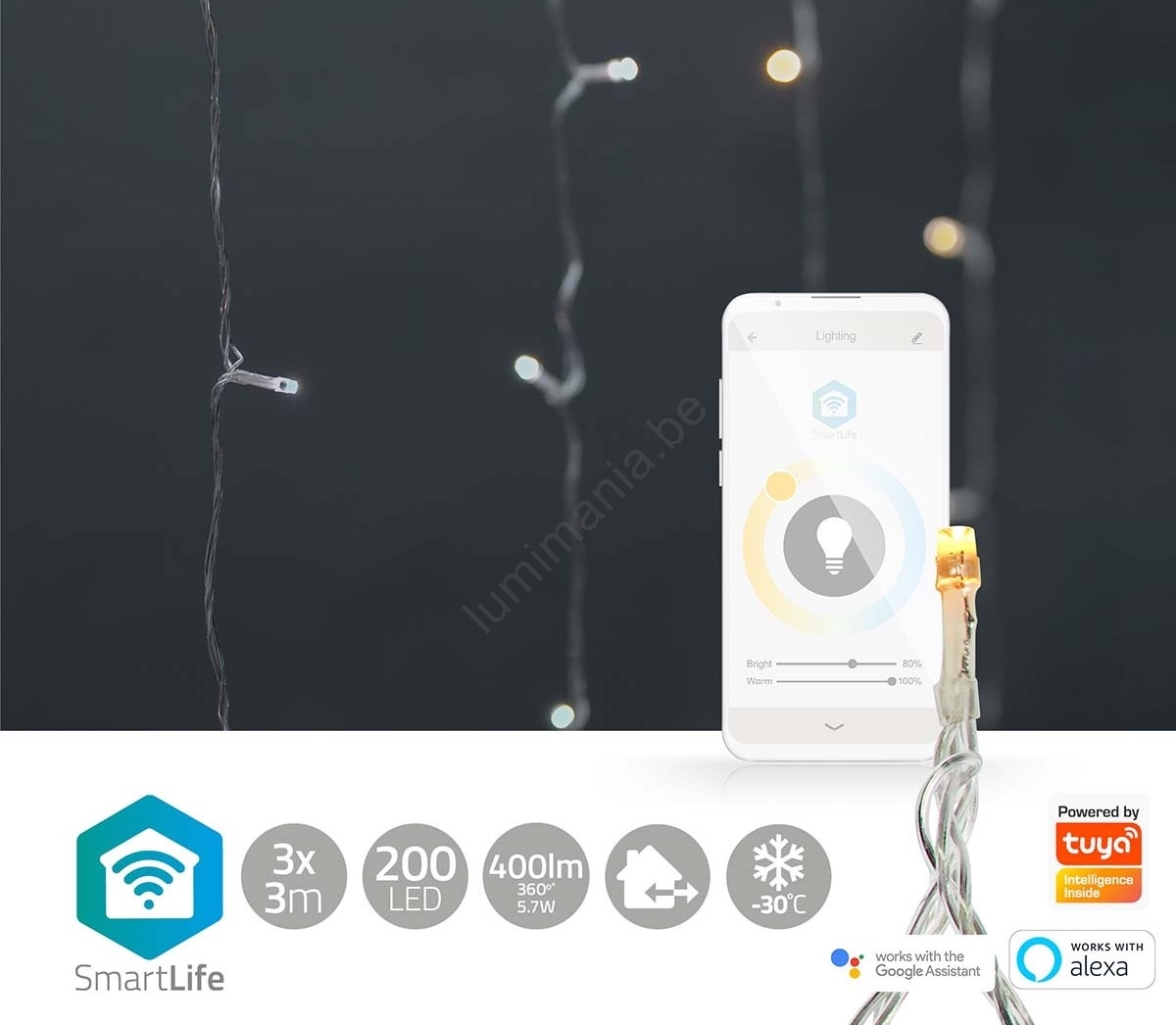 LED kerstgordijn 200×LED / 11 functies, 6 m, IP65, Wi‑Fi (Tuya), warm tot koel wit
