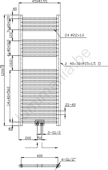 Novaservis - Badkamer handdoekradiator 318W/230V 120x45 cm glanzend chroom recht