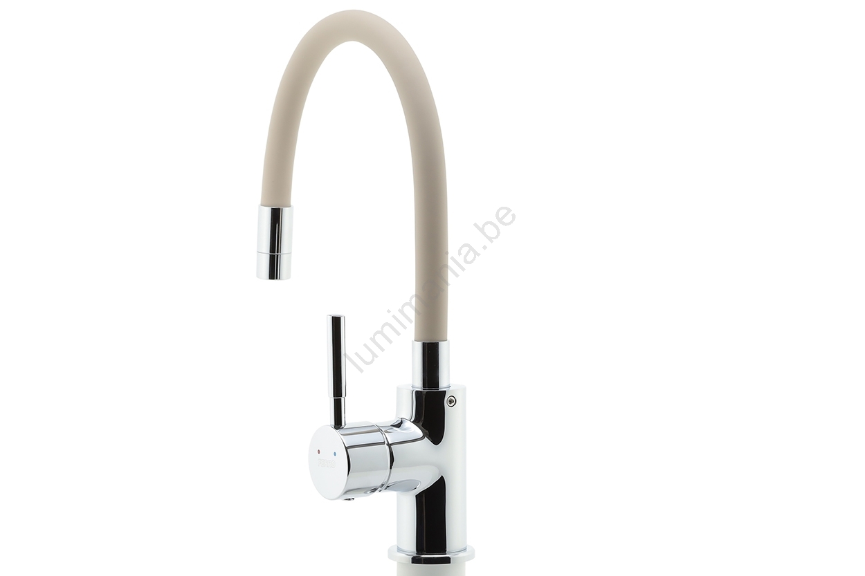 FERRO - Kraan voor gootsteen met flexibele arm glanzend chroom/beige